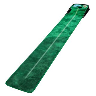 Bring the fun and relaxation of the golf course to your home or office with this home putting green. The regulation-size cup and high-quality grass substitute help you practice your game in realistic conditions, and the addition of a sand trap and water hazard gives you incentive to improve your skill. The putting green features an electronic ball return for convenience. This portable putting green is small enough to comfortably fit into most rooms but big enough to provide plenty of enjoyment.- Enhance your golf game with a practice putting green and electronic ball return