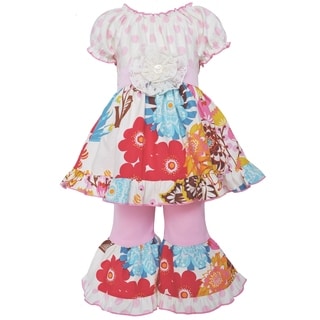 SaleAnn Loren Girl's Floral Bouquet and Polka-Dot Tunic with Capri Set
