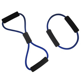This flexible and durable exercise band features contoured hard-shell hand grips and a range of resistance from 9 inches to 36 inches. This stretch band is a great way to tone muscles.- Material: Thermoplastic rubber (TPR), plastic