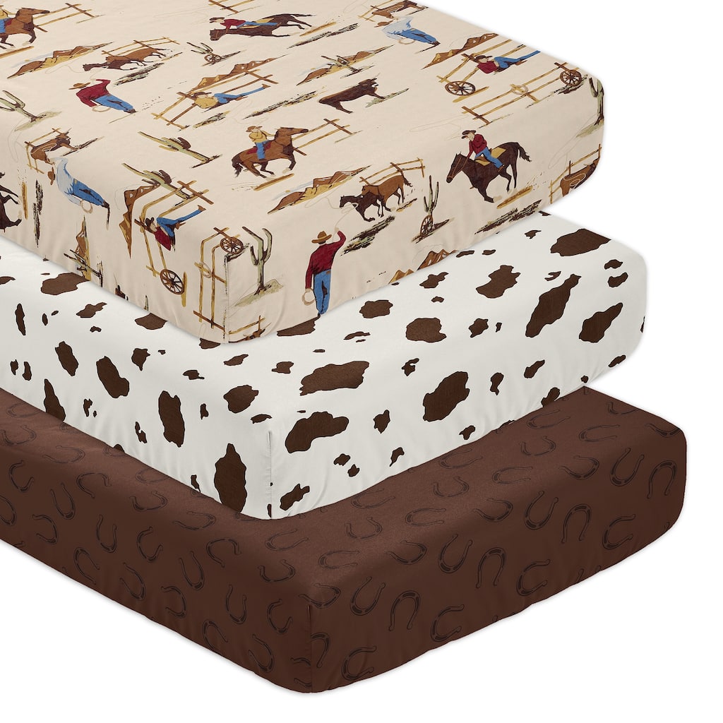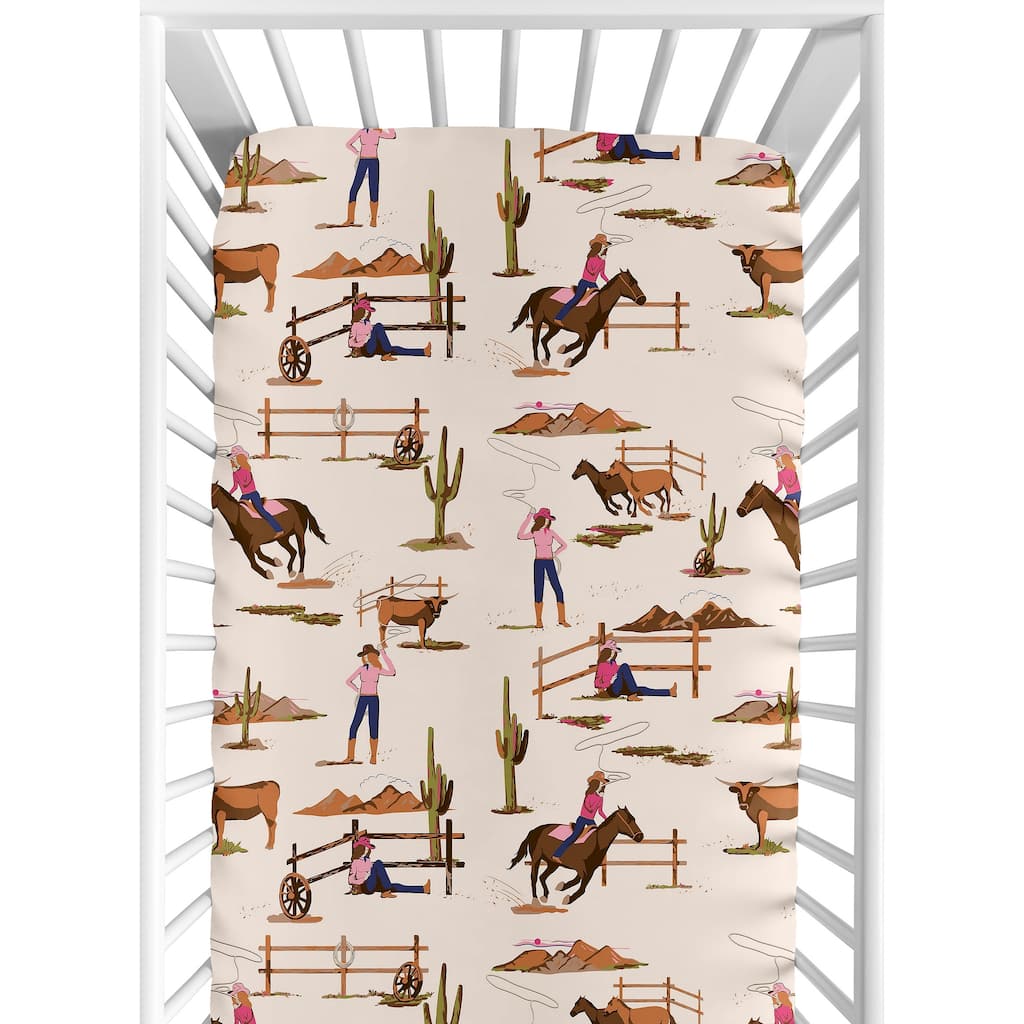 Sweet Jojo Designs Western Cowgirl Girl Photo Op Fitted Crib Sheet Wild West Vintage Country Animal Southwest Brown Pink Blue