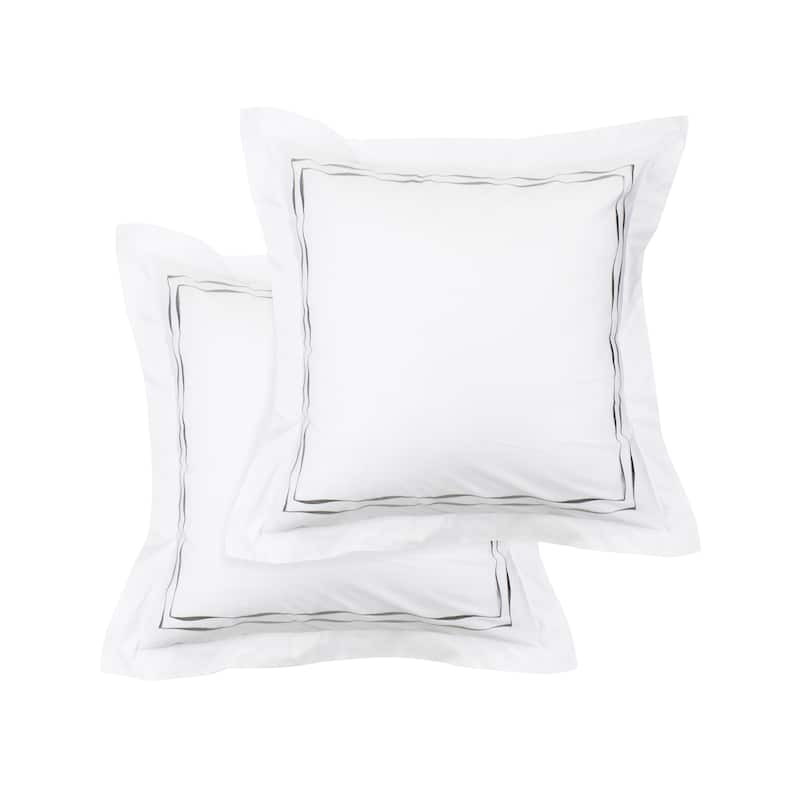 We weave our 300 thread count percale euro shams with extra fine long staple cotton, laying one warp thread over one weft thread in a one to one ratio. This produces a euro sham with a matte finish that is soft yet durable, crisp and cool to the touch. We added a thin embroidered stripe to the border for a hint of style. Our percale euro shams are one of the best bedding investments you can make. Euro pillow insert sold separately. Size Euro Sham: 26x26 Inches