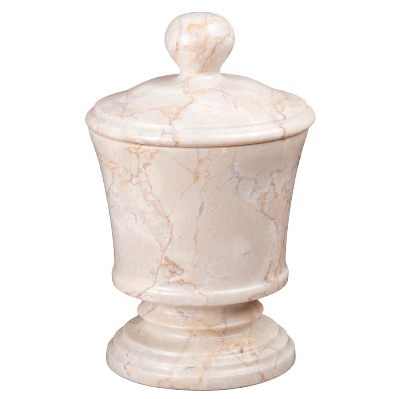 Creative Home Pedestal Collection Champagne Marble Cotton Ball Swab Holder, Bathroom Storage Jar - Beige