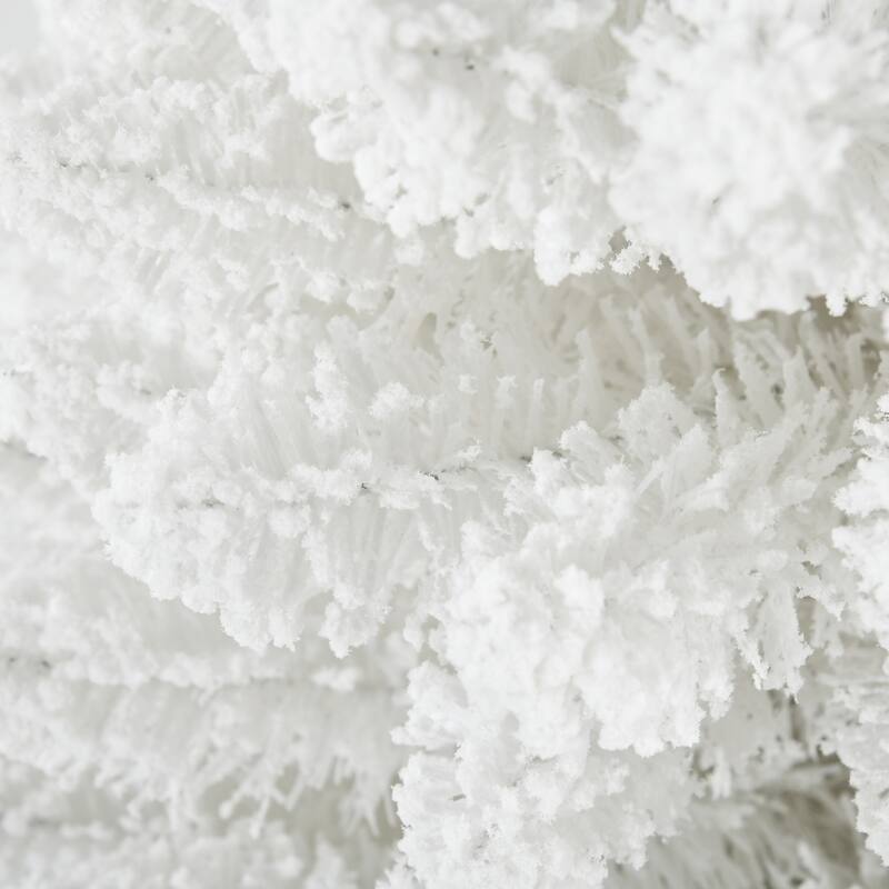 - Snow-flocked design creates a winter atmosphere without having to clean up a mess