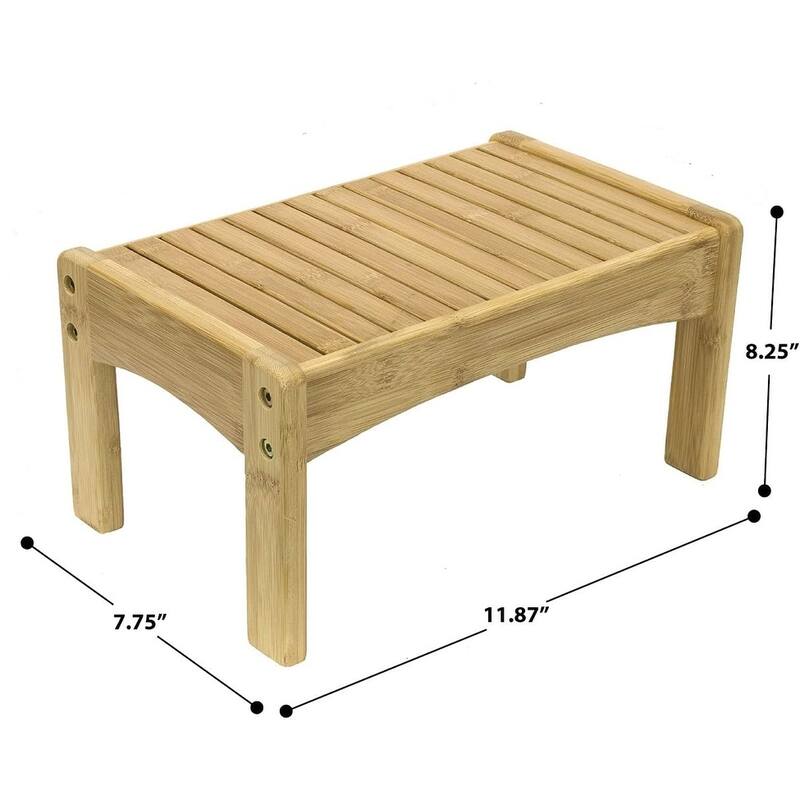 Thoughtfully sized and sturdy, this step stool is great for reaching high places! It features beautiful bamboo wood with a slatted surface. It can be used for anything from potty training to reaching counters and cupboards, or even a footrest next to the bed. Kids can feel a little more independent at counters to wash their hands or simply to grab their favorite snacks. This lightweight stool is easy to put away and ideal for any kitchen or bathroom. Slatted bamboo step stool/footrest Convenient for reaching sinks, counters, and cupboards Lightweight, compact, and easy to move Made of 100% bamboo construction. Color is Natural Minimal assembly required (Instructions INCLUDED) Measures approximately 14" L x 8.50" W x 7" H For indoor use. Wipe clean
