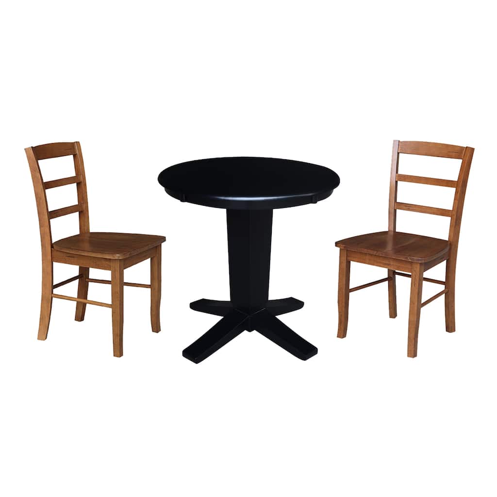 36 in Solid Wood Round Top Pedestal Dining Table with Dining Chairs in Black/Distressed Oak