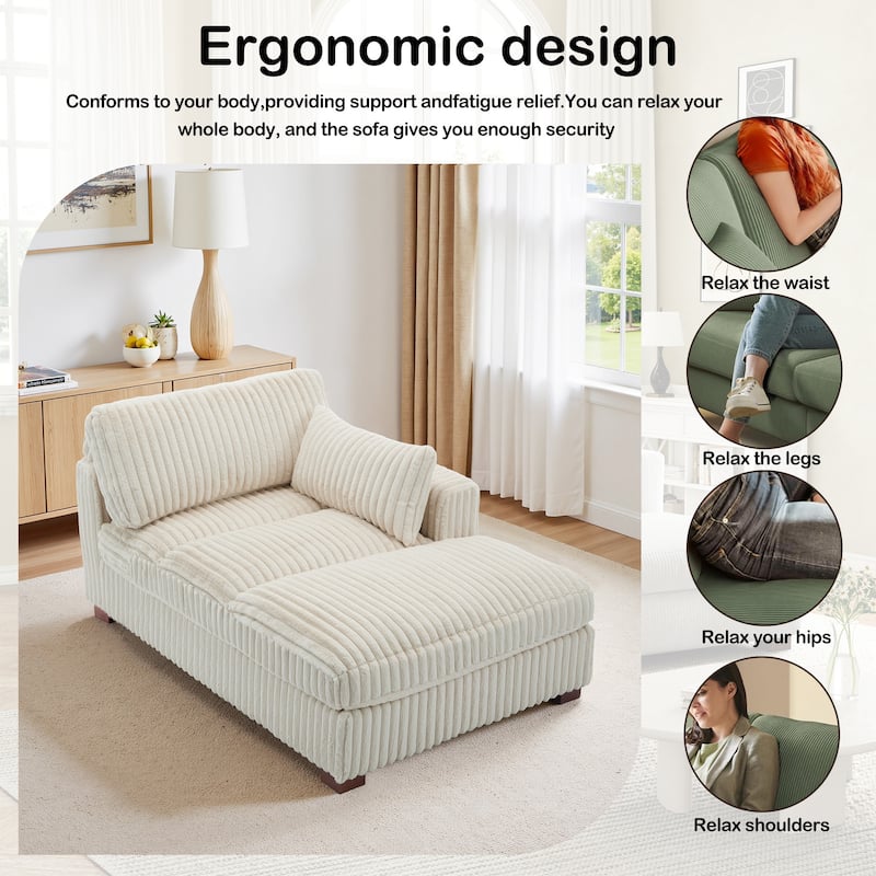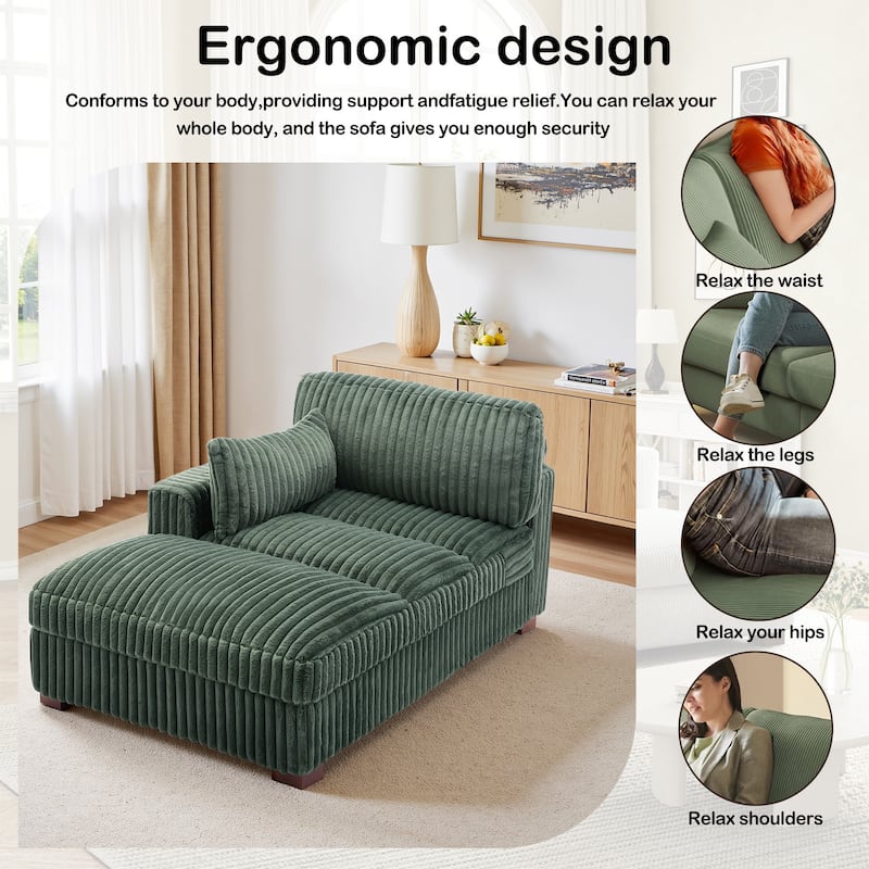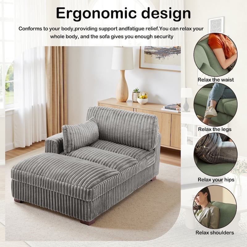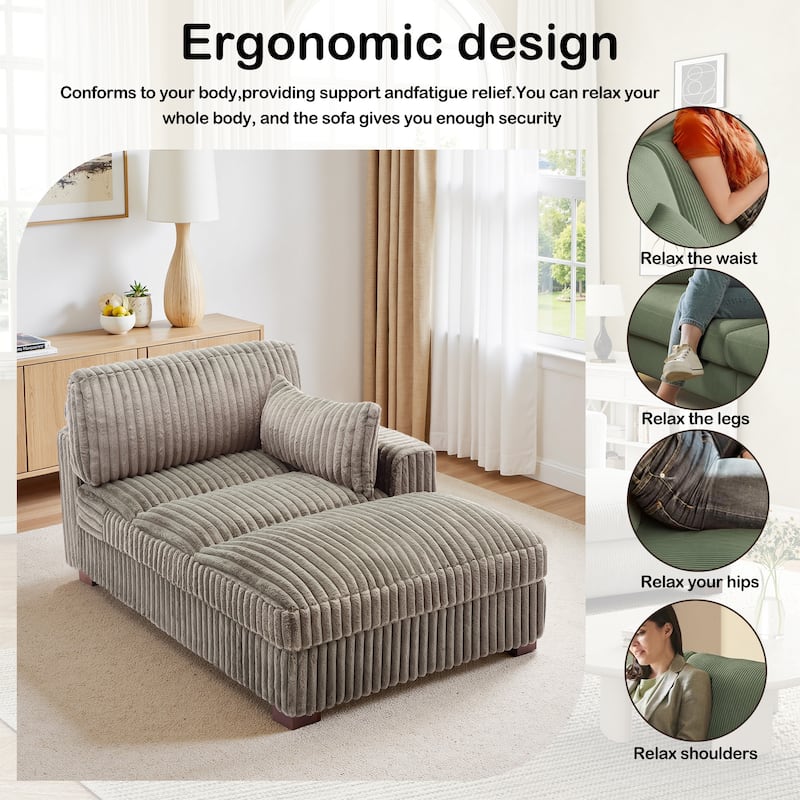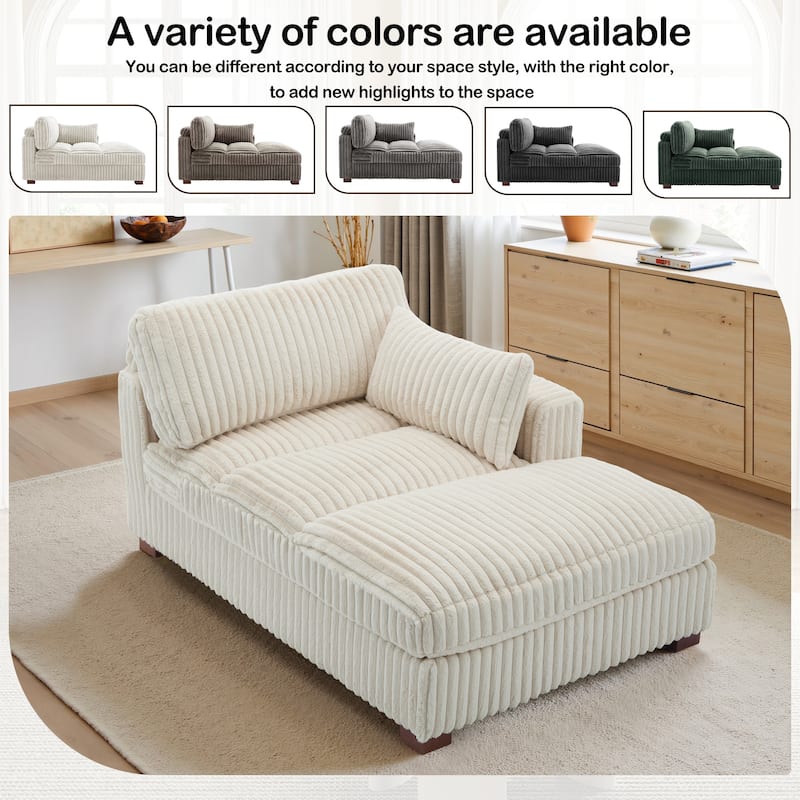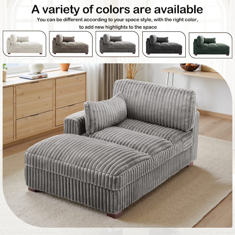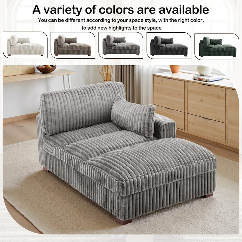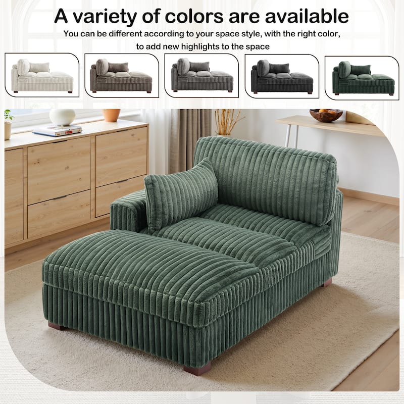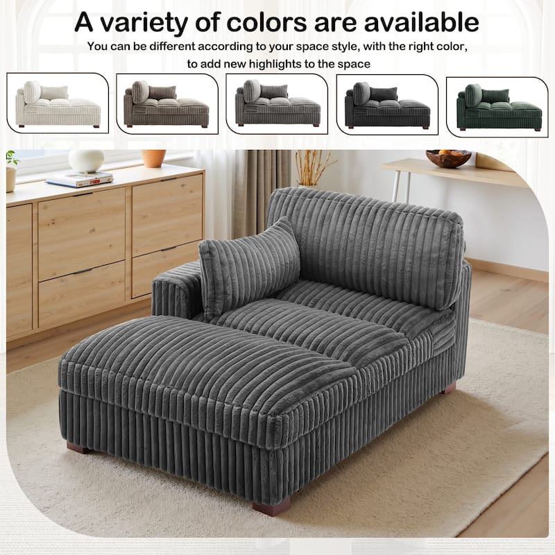 41" W Plush Corduroy Chaise Lounge with Pillows