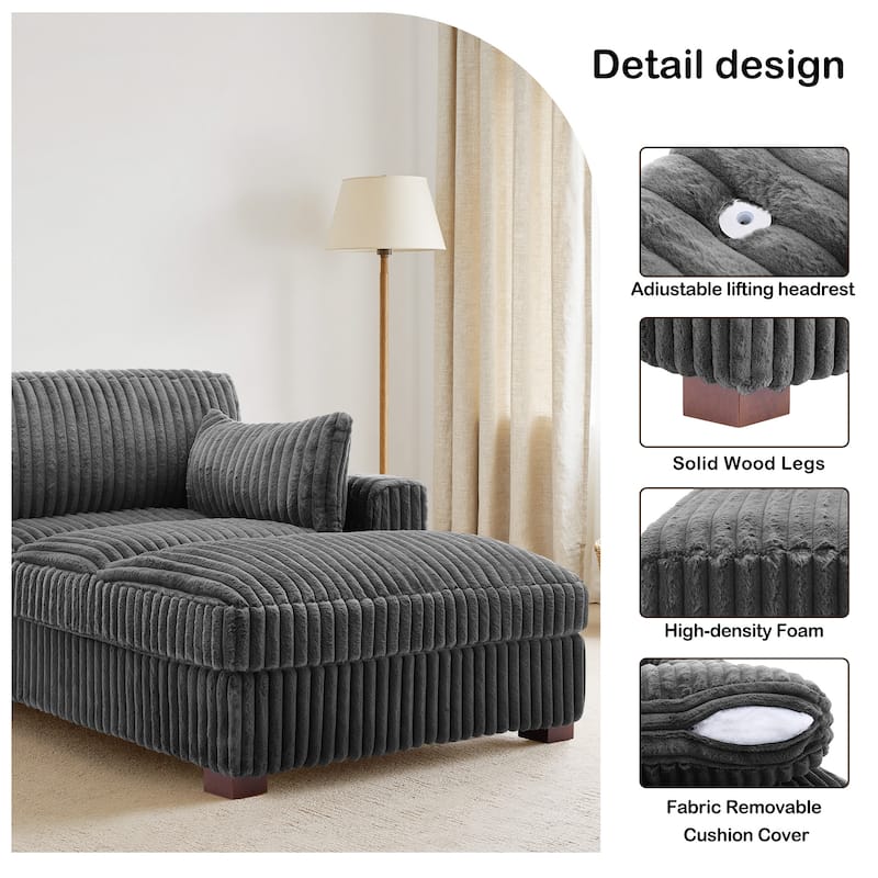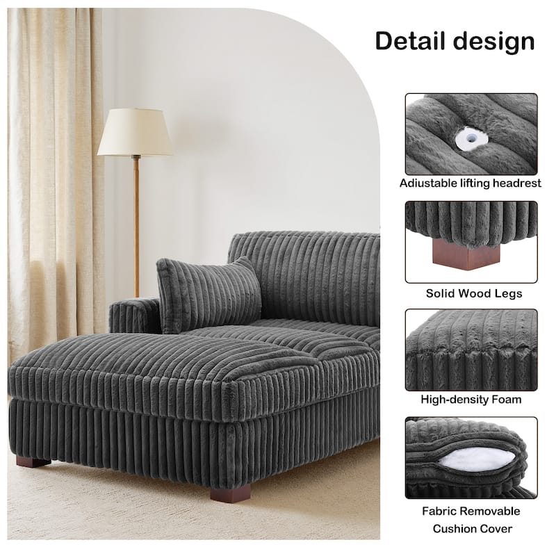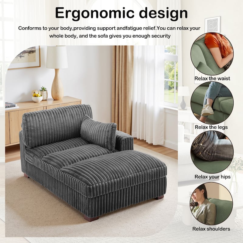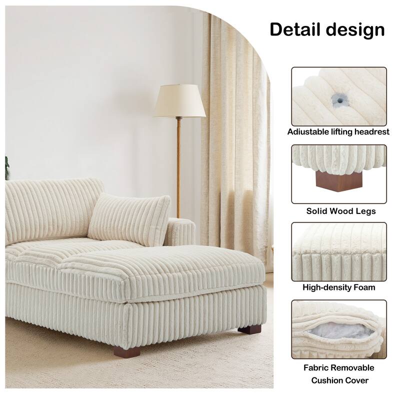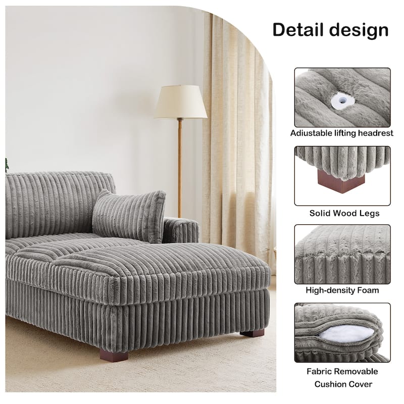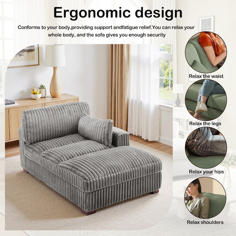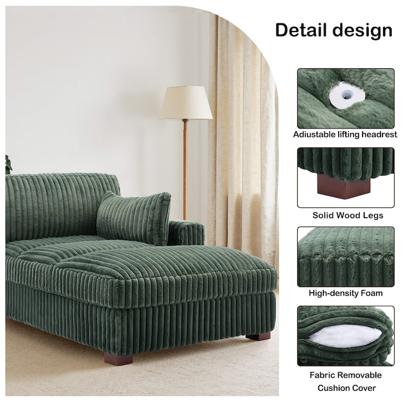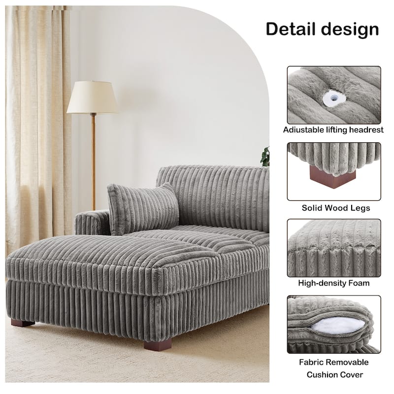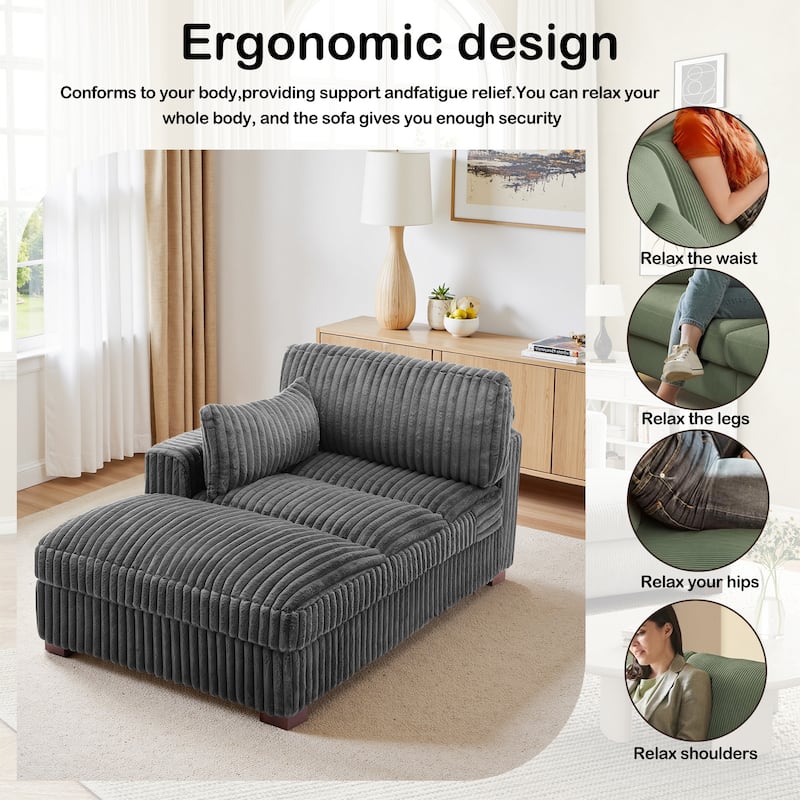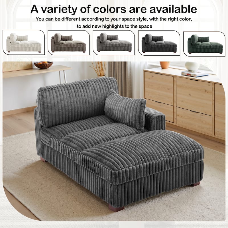 41" W Plush Corduroy Chaise Lounge with Pillows