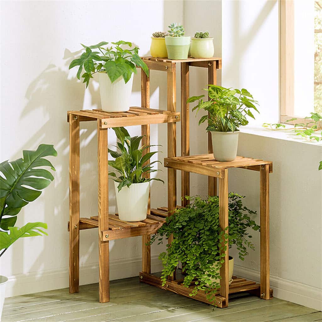 Keeps plants off the floor without damage from pets, get sunlight and grow better.