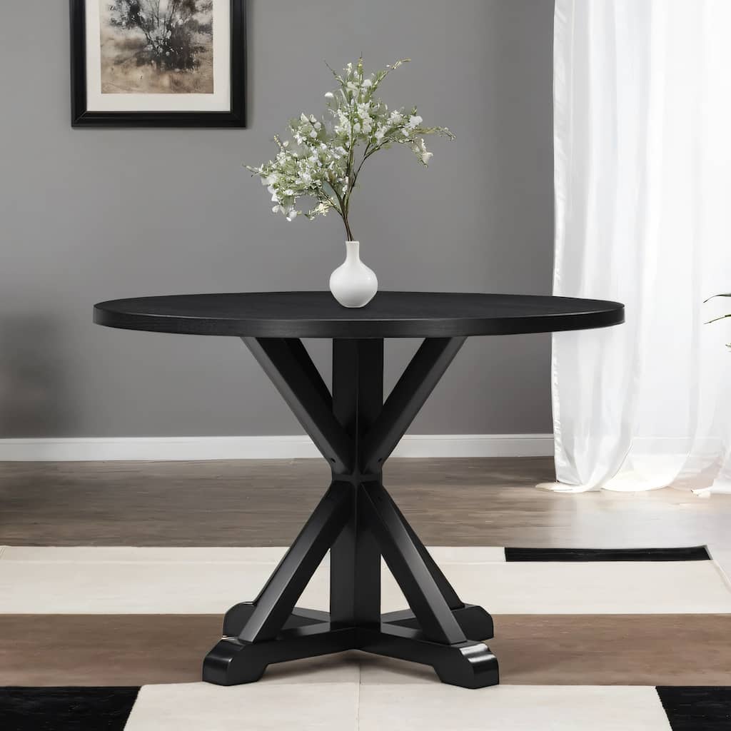 Blair Black Round Wood Dining Table with Starburst Style Base