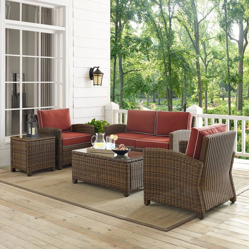 Crosley Bradenton 5-piece Outdoor Wicker Conversation Set with Sangria Cushions - 131.5 "W x 93.75 "D x 32.5 "H