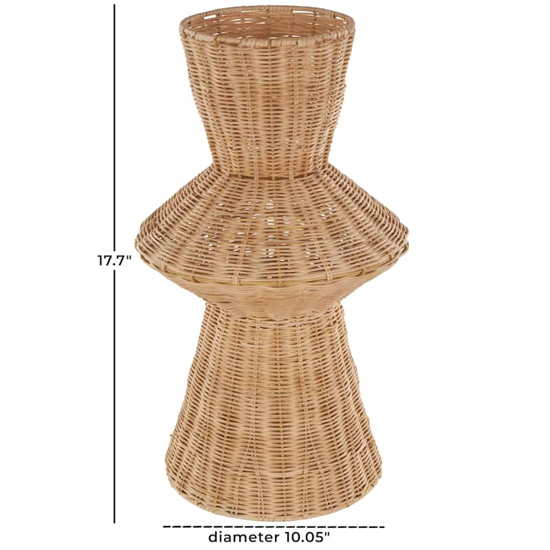 - The brown rattan vase measures 10.05L x 10.05W x 17.7H inches, and weighs 1.615 lbs