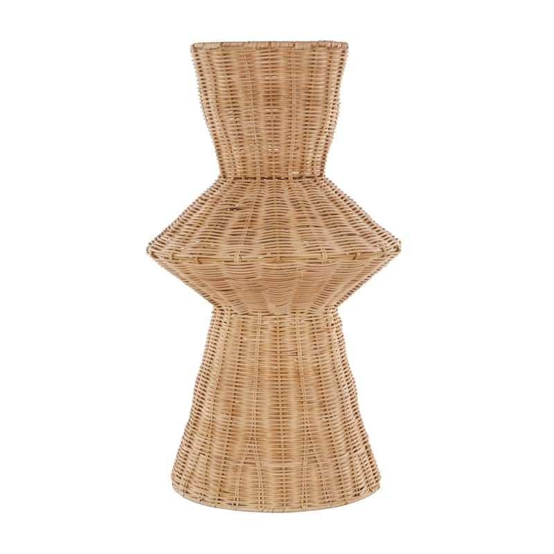 - This rattan vase features a fluted design, giving it a distinct hourglass shape that is both functional and aesthetically pleasing