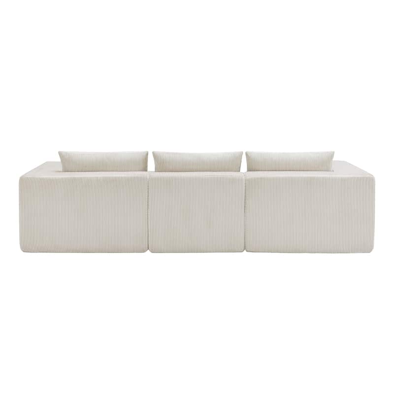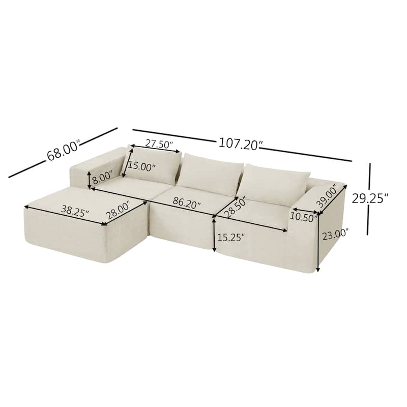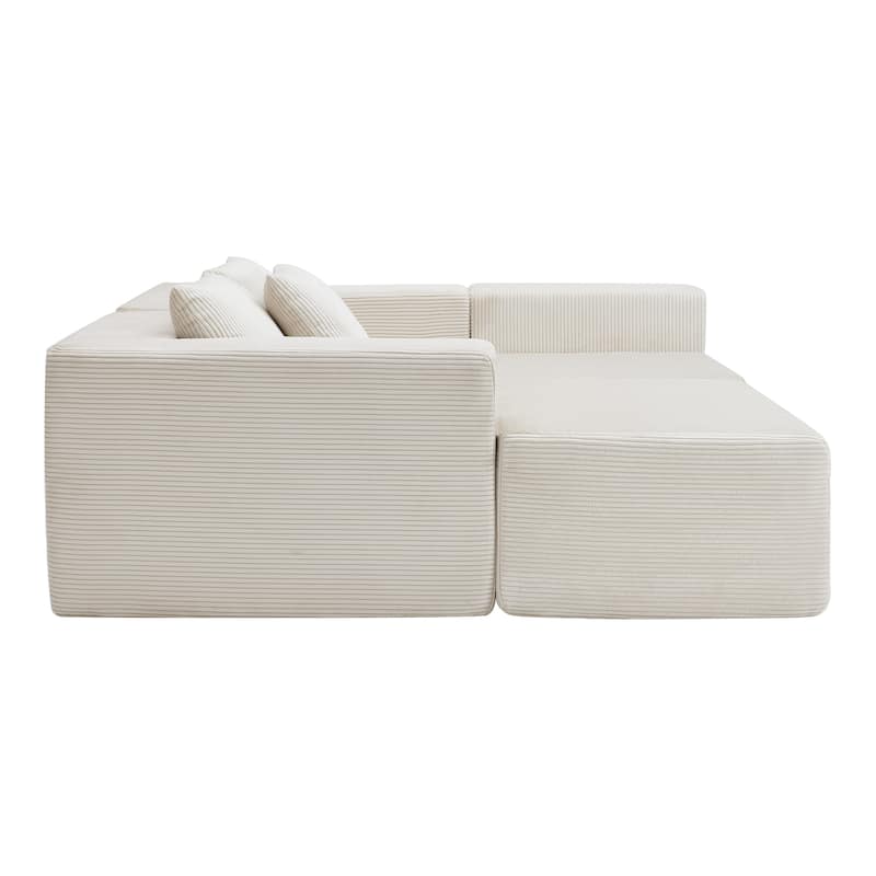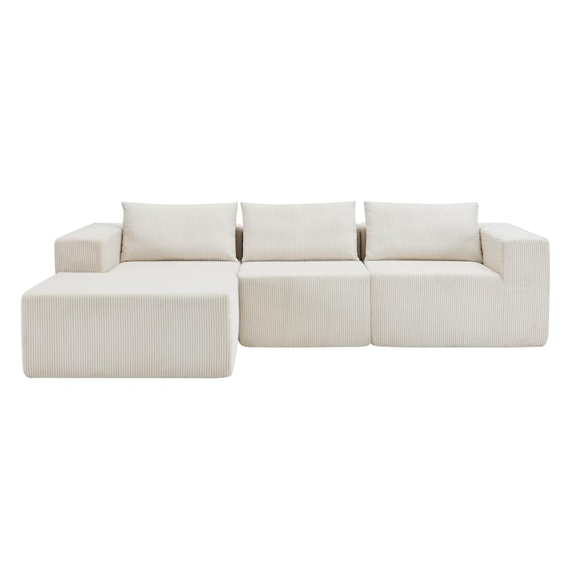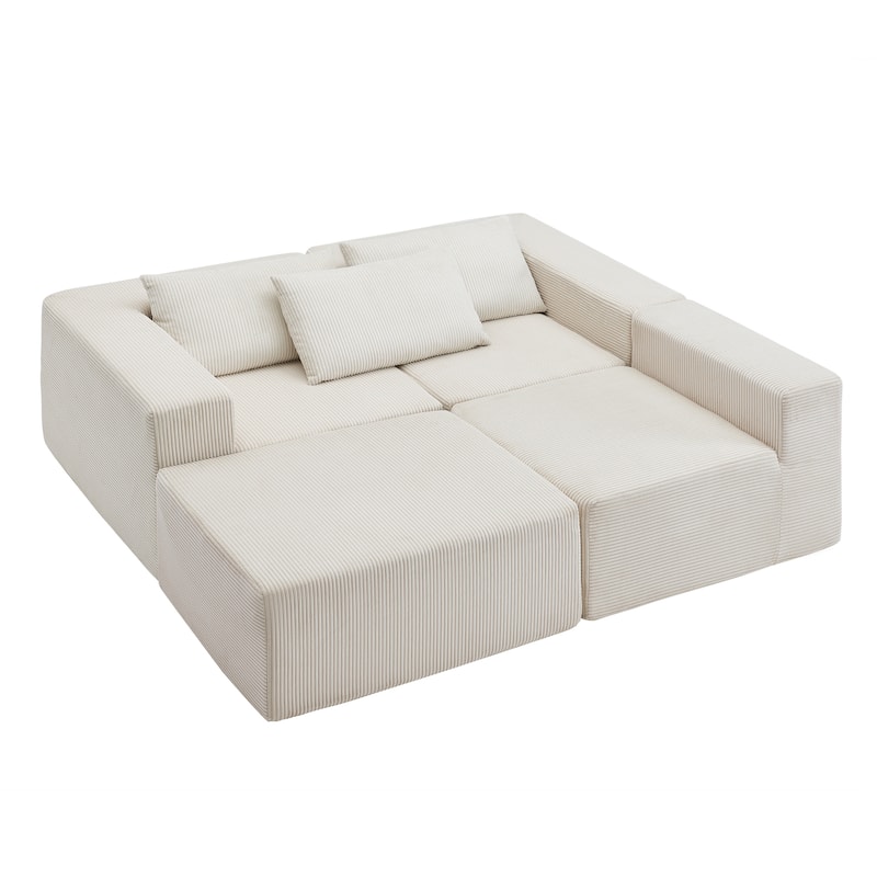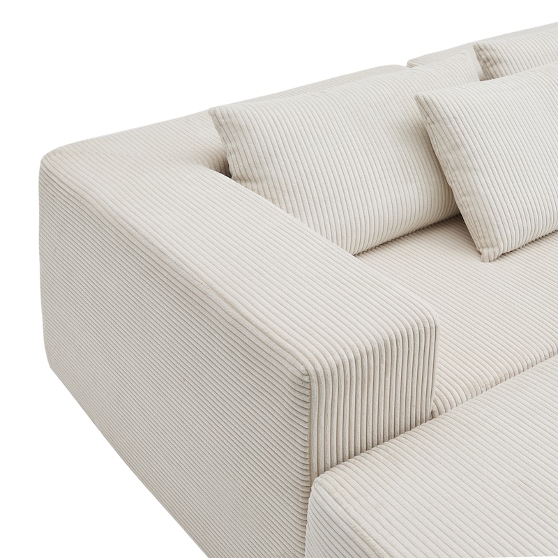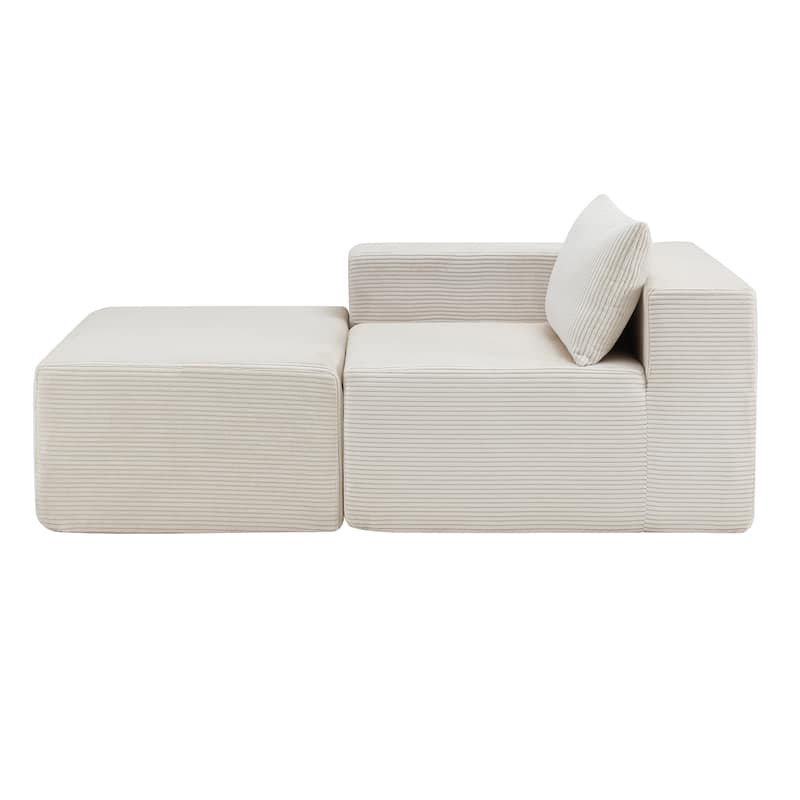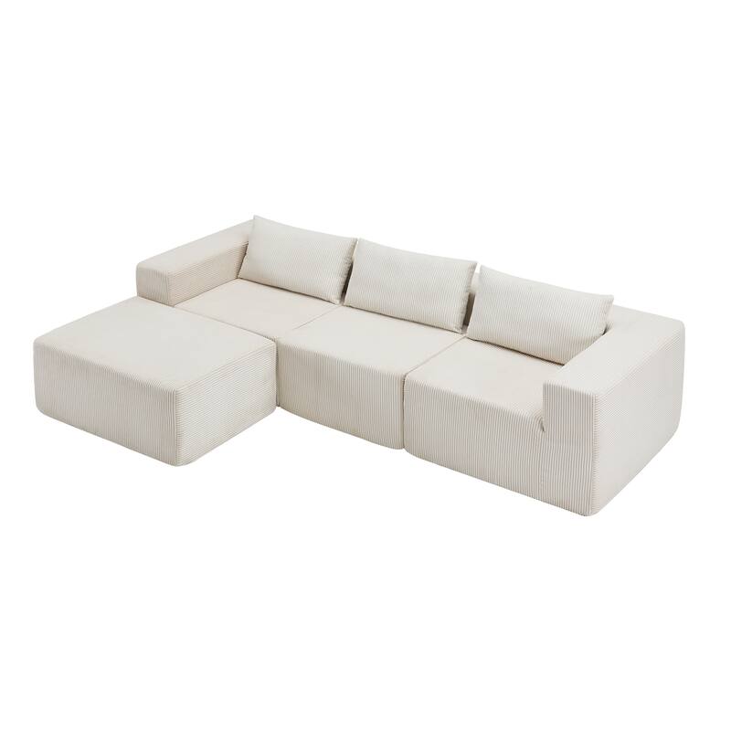 Redefine relaxation with the GDF Studio [Collection Name] Modern Corduroy Modular Sectional Sofa, a versatile centerpiece designed for both comfort and style. Wrapped in soft, skin-friendly corduroy and filled with high-density foam, this 107-inch beige sectional offers a cloud-like seating experience. Its modular construction allows for flexible configurations, while the included ottoman doubles as a footrest, extra seat, or table. With no assembly required, this sofa is ready to elevate your living space the moment it arrives.