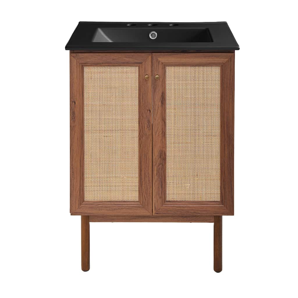 Classe 24 In. Oak Bathroom Vanity With Black Ceramic Sink Top