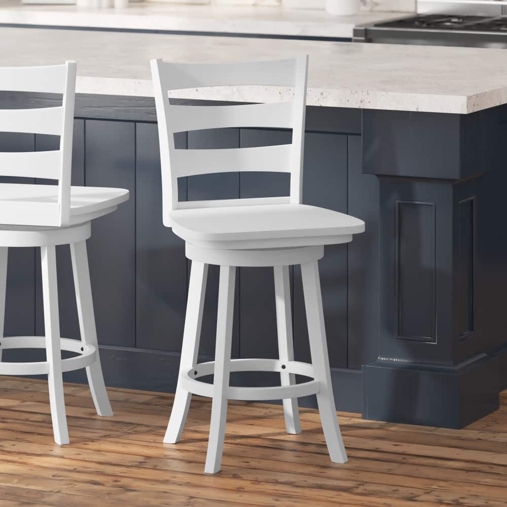 Modern Ladderback Wooden Upholstered Swivel Counter Height Stool