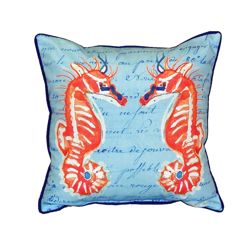 Give your living space a quick style update with this one-of-a-kind throw pillow. The Coral Sea Horses On Blue throw pillow by Betsy Drake features a classic square shape that is perfect for accenting sofas and bedding ensembles. Crafted with polyester materials, this pillow is soft to the touch and machine washable for your convenience.