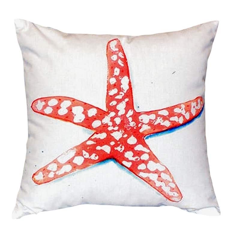 The Coral starfish throw pillow by Betsy Drake is the perfect choice for a quick style update to any indoor or outdoor living area. Crafted with polyester materials, this pillow is soft, durable and machine washable for your convenience.