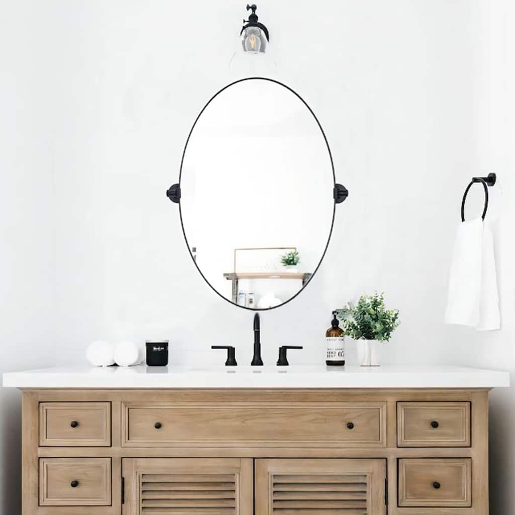 - Capsule design: Modern and Sleek, Simple yet elegant. This 30x40 oval mirror is framed in a capsule design handcrafted with a nickel finish, coming with a 1-inch depth frame which is extremely minimalist and able to greatly live up your space. Easily enhance the beauty of your rooms.