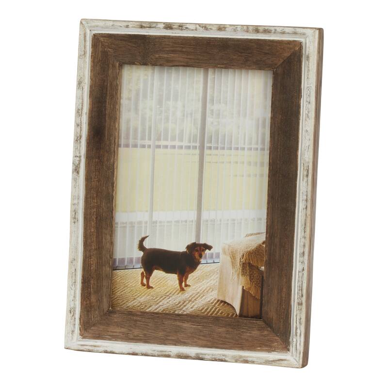 Give your photos dimension with this lovely, vintage style Distressed Wooden Picture Frame. The light and dark tones create a beautiful contrast, while the distressed marks add style. It's the ideal frame for a bookcase shelf or a wooden nightstand.