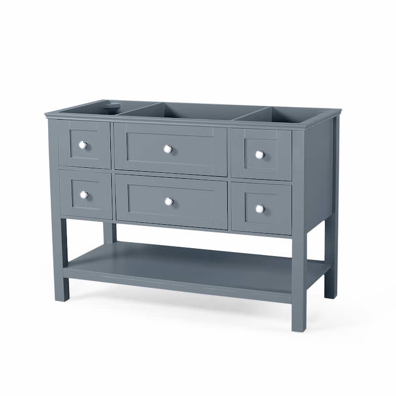48" VANITY WITH BOTTOM SHELF STORAGE: This single vanity does not come with a top, which is perfect for those who love to personalize their furniture. The length of this piece provides generous room for your sink and extra counter space, as well as a long shelf near the bottom for storing your bathroom necessities.