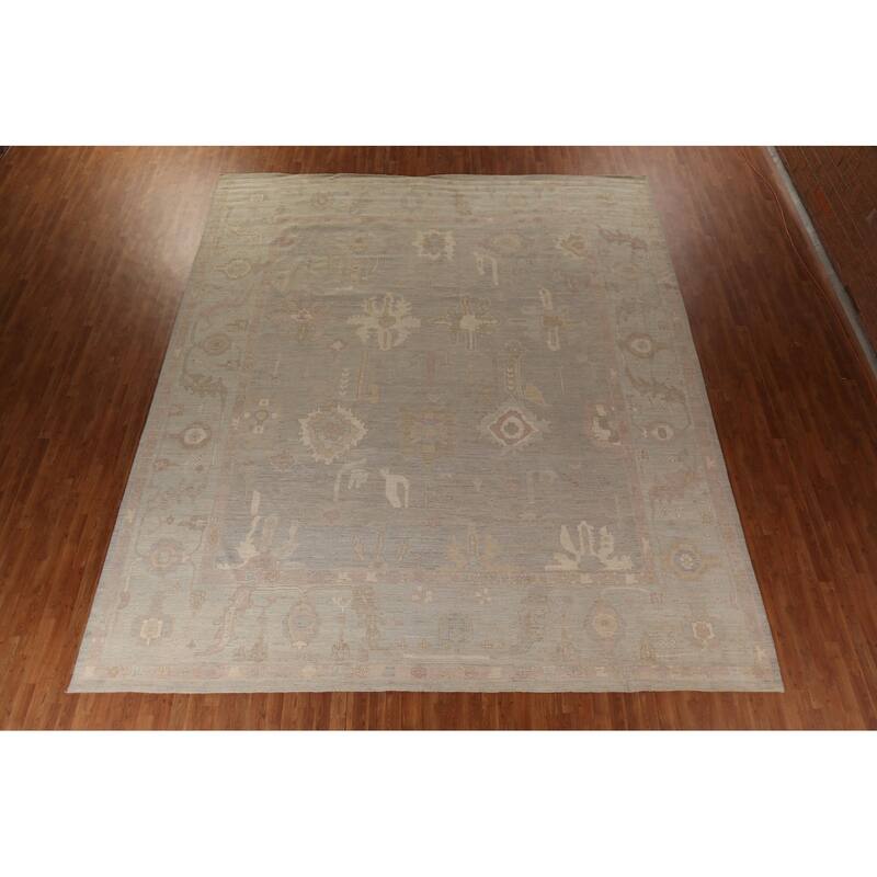 Earth Tone Oushak Large Rug Hand-Knotted Wool Carpet - 12'5"x 14'3"