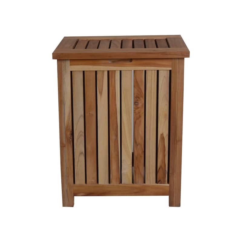 The EcoDecors Slatted Standard Hamper accessorizes any room or outdoor patio while offering plenty of classy storage space. The contemporary design of the solid teak hamper is both durable and functional, as its slats provide airflow through the hamper. Available in your choice of 3 sizes. Includes removable storage bag. The proprietary EcoDecors finishing process highlights the beauty of teakwood's natural wood grains and color variations. EcoDecors is a small female owned and operated company priding itself on quality, value, and service. We source directly from small rural workshops in developing countries. Our craftspeople use artisan techniques handed down from generation to generation. To assure our quality we employ our own inspection staff on site and do 100% quality check in the USA. Made in Indonesia by local crafts people. Sustainably sourced and manufactured. Weight capacity is 250 pounds. Some Assembly is required.