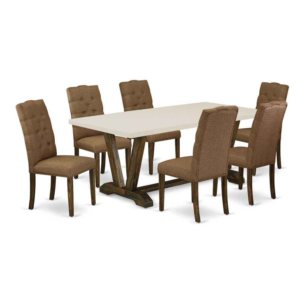 Elegant 7-Piece Dining Set - Rectangular Table & 6 Parsons Chairs - Hardwood Construction - 72