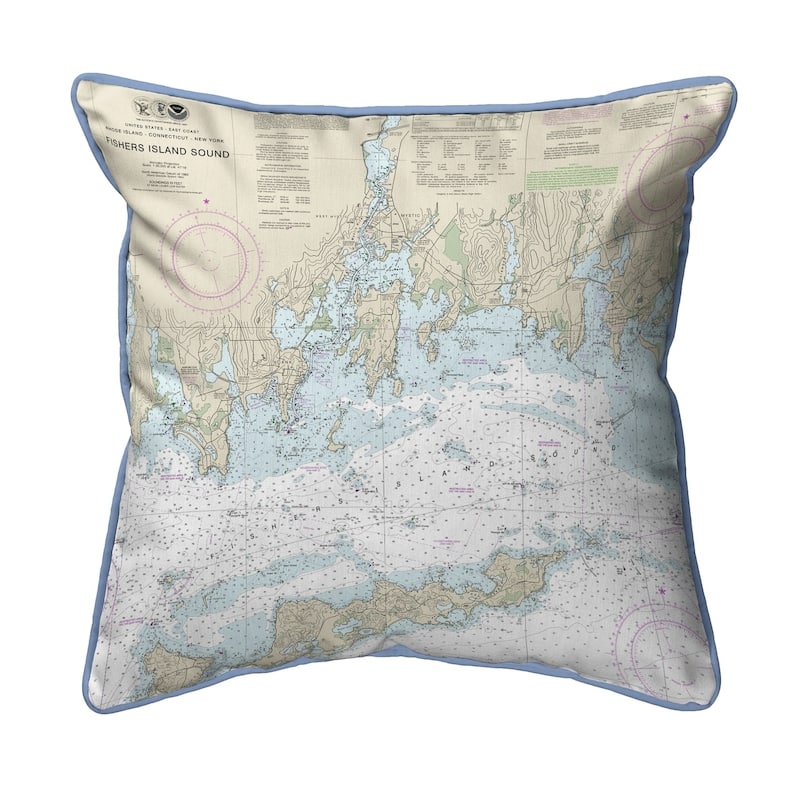 Fishers Island Sound, RI Nautical Map Extra Large Zippered Pillow