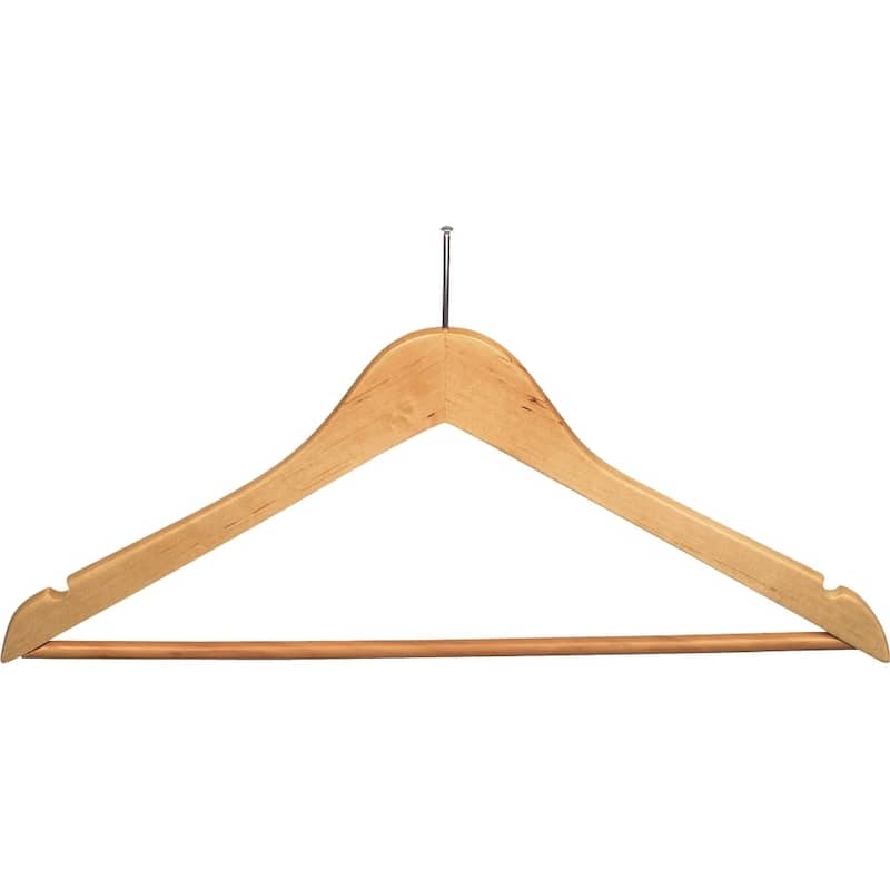 These sturdy, well-constructed hardwood hangers feature a space-saving flat body, two carefully crafted notches for the option of hanging straps, and an anti-theft nail hook. Finished with a double coating of lacquer to prevent splintering, these high quality, low cost hangers will last you for a lifetime. Offered in 3 styles; Top, Suit with Fixed Bar, and Combo with Adjustable Cushion Clips. Must be used with A-Ring or B-Ring.