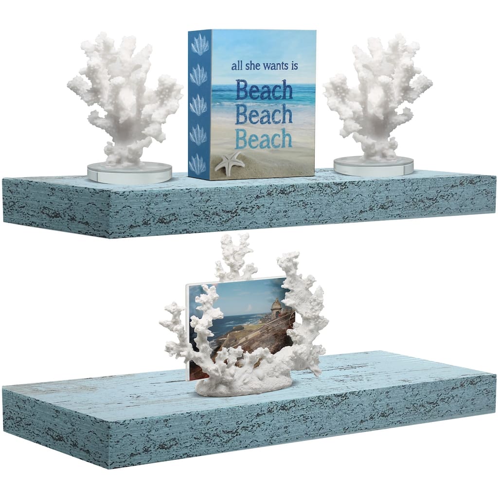 Floating Shelf Set, Rustic Wood Beach Style Hanging Wall Shelves - 3-Pack