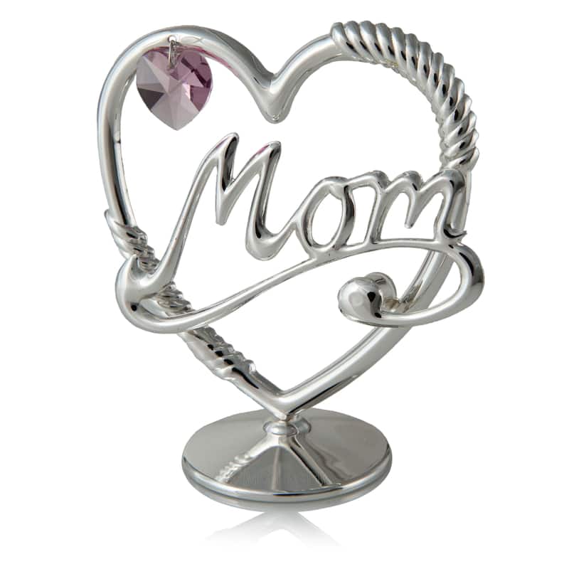 Genuine Matashi Crystals 24K Gold or Silverplated Mom In A Heart Table Top Ornament
