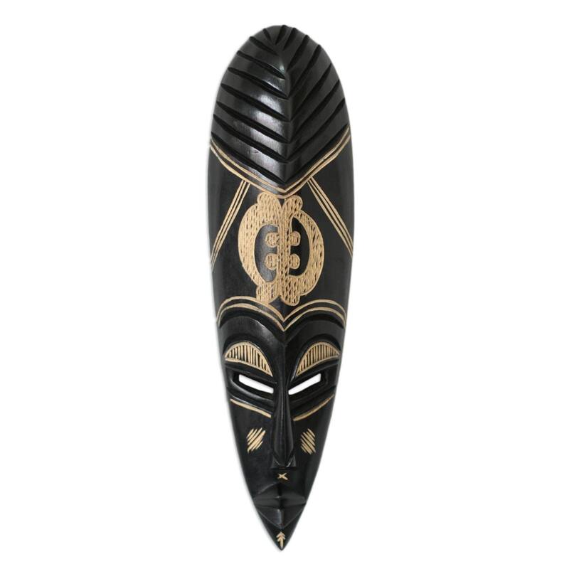 Handmade God is My Guide Tribal Wall Mask (Ghana) - Black