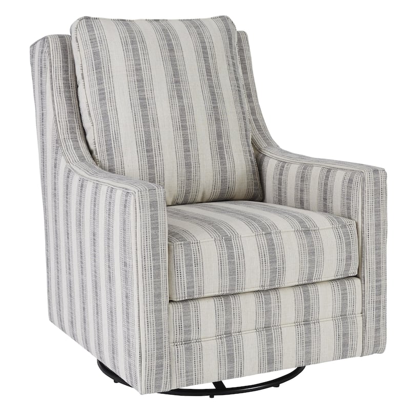 Gradient Stripes Fabric Wrapped Swivel Glider Accent Chair, Gray and White