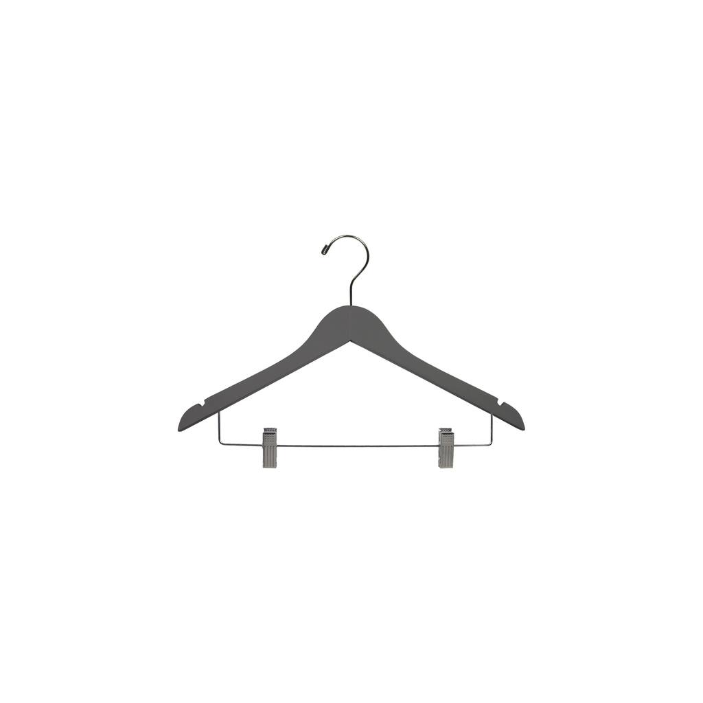 Grey Plastic Top Hanger W/ Non-Slip Rubber Shoulder Strips & Notches, 17" Length X 3/8" Thick, Chrome Hook Box of 100