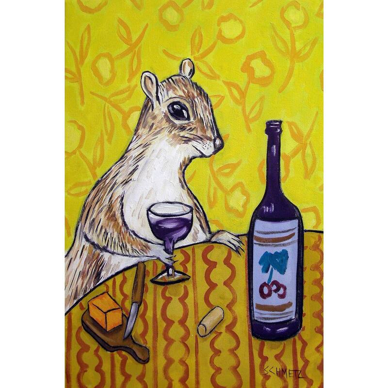 'Grey Squirrel Wine Bar' Painting Print on Wrapped Canvas - Multi-Color