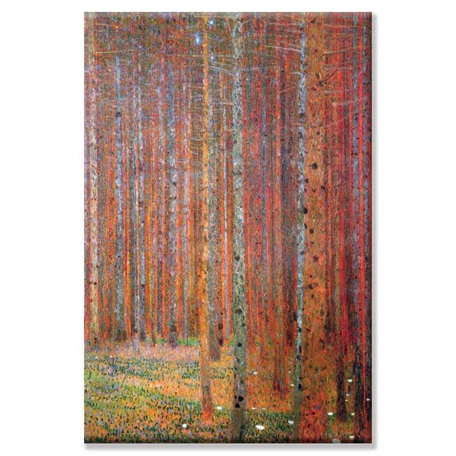 Bring a bold, colorful element to your wall with this modern canvas art by artist Gustav Klimt. This work of art is titled 'Tannenwald' and features an abstract landscape in softly muted shades that will lend a dramatic impact to any room.