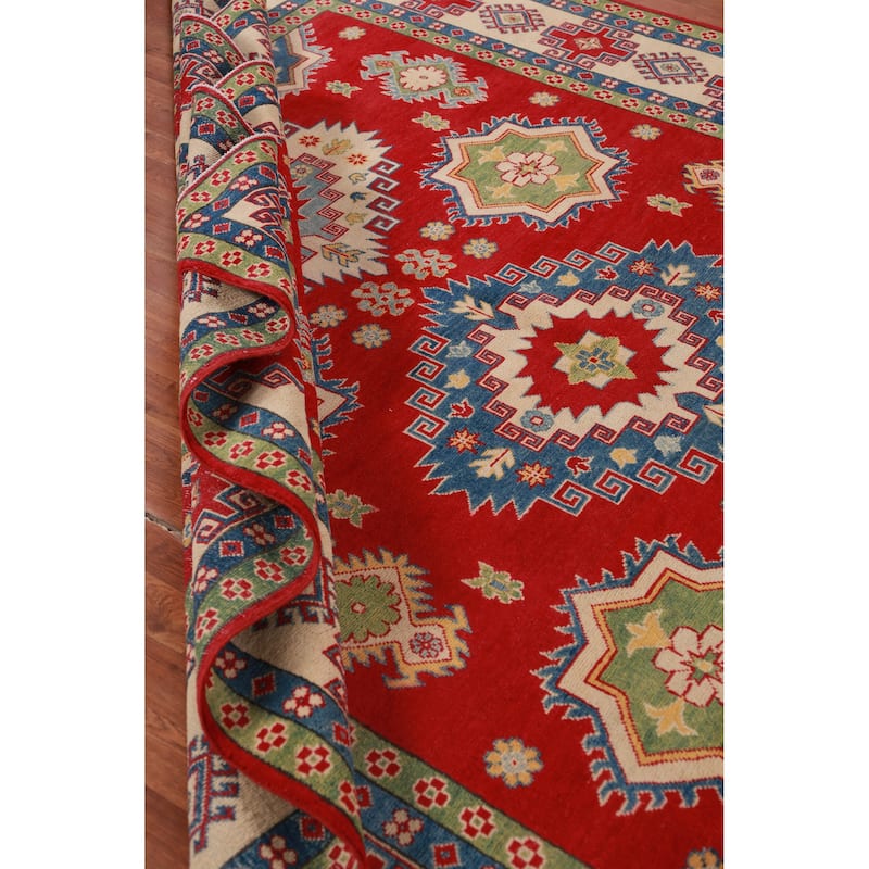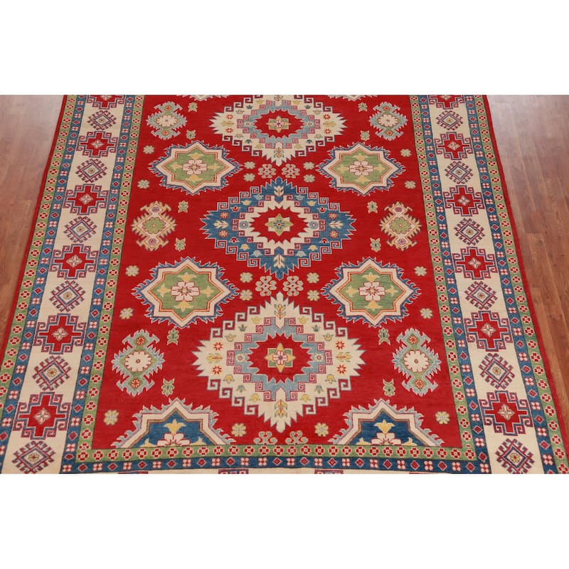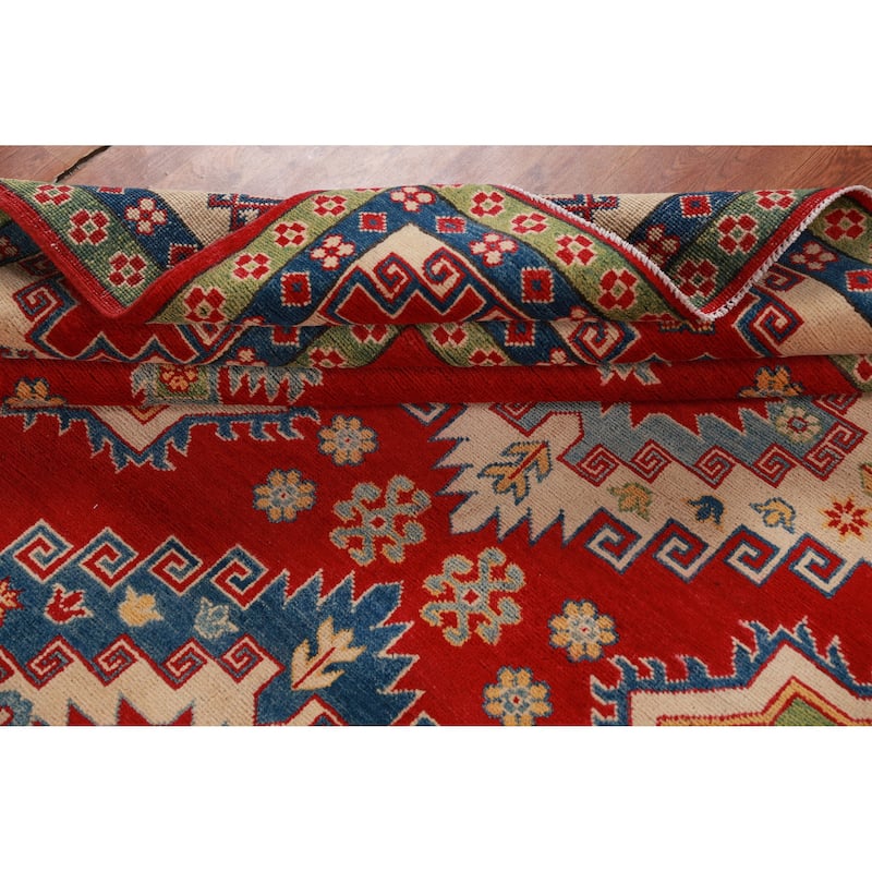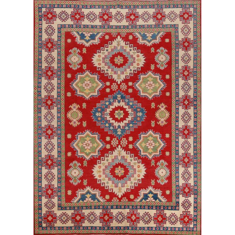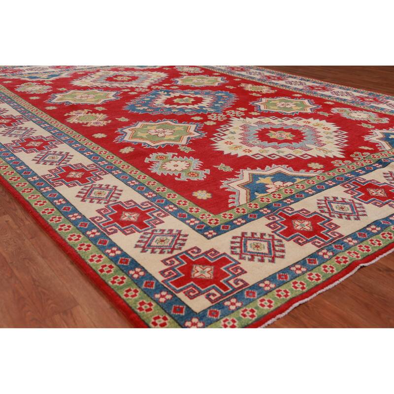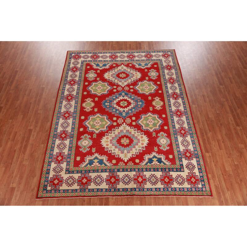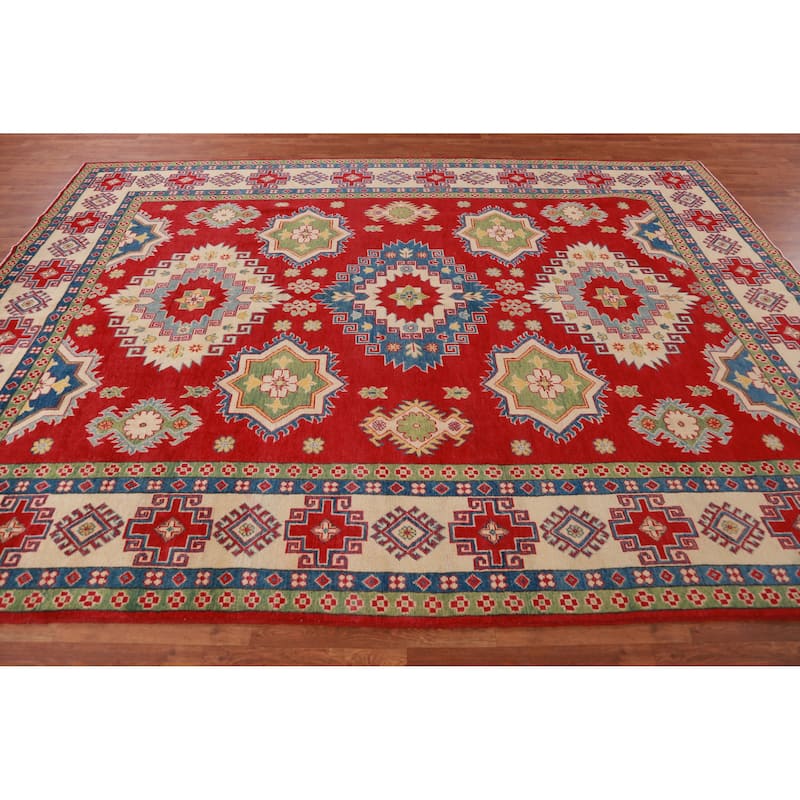 Hand Knotted Oriental 100% Wool Carpet Traditional Geometric Red Kazak Area Rug - 10' 10'' X 8' 3''
