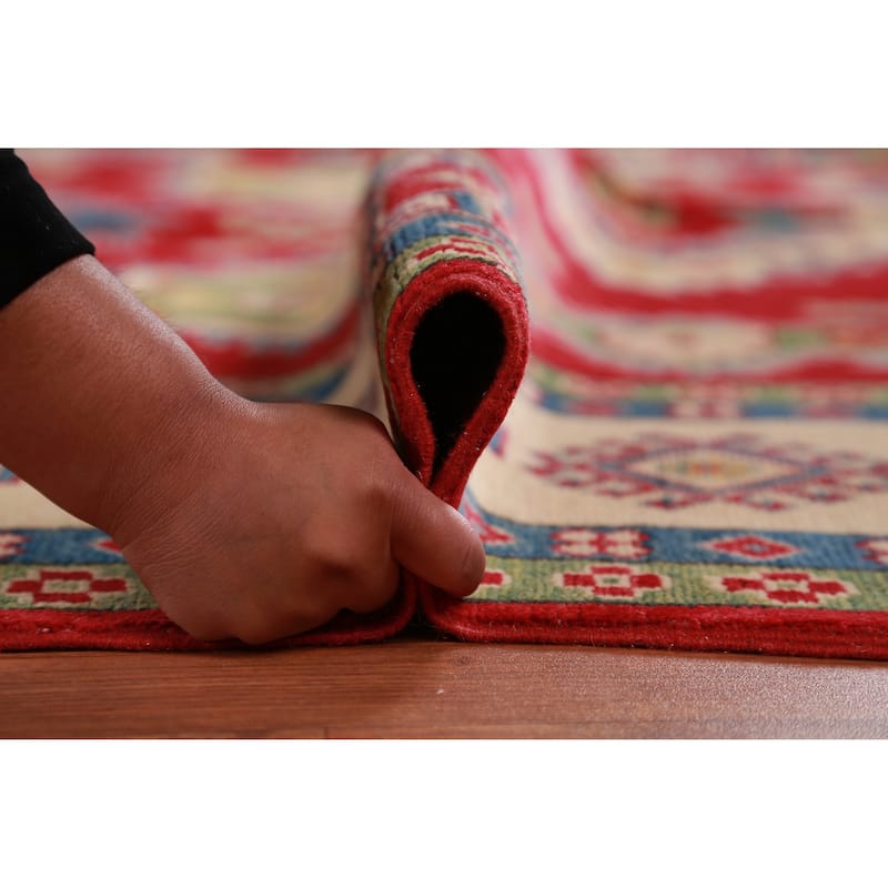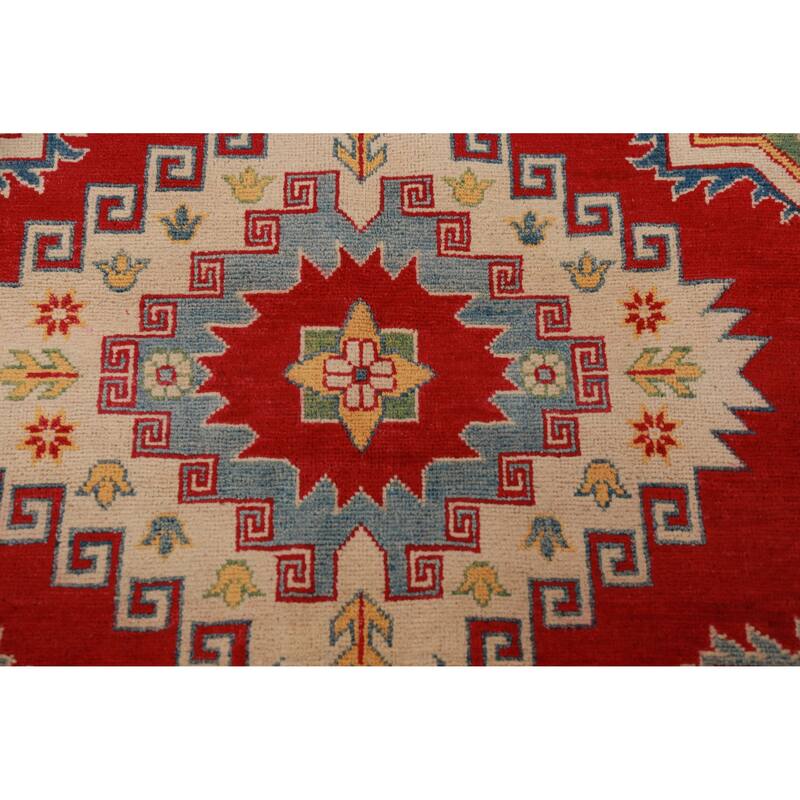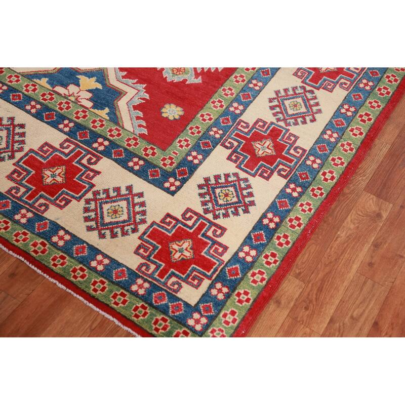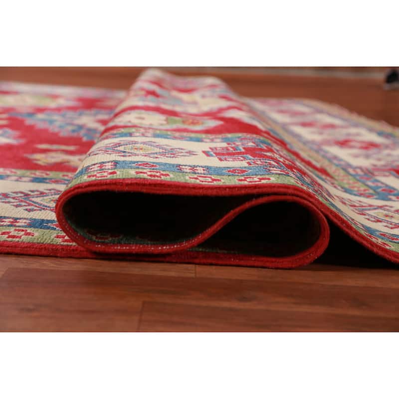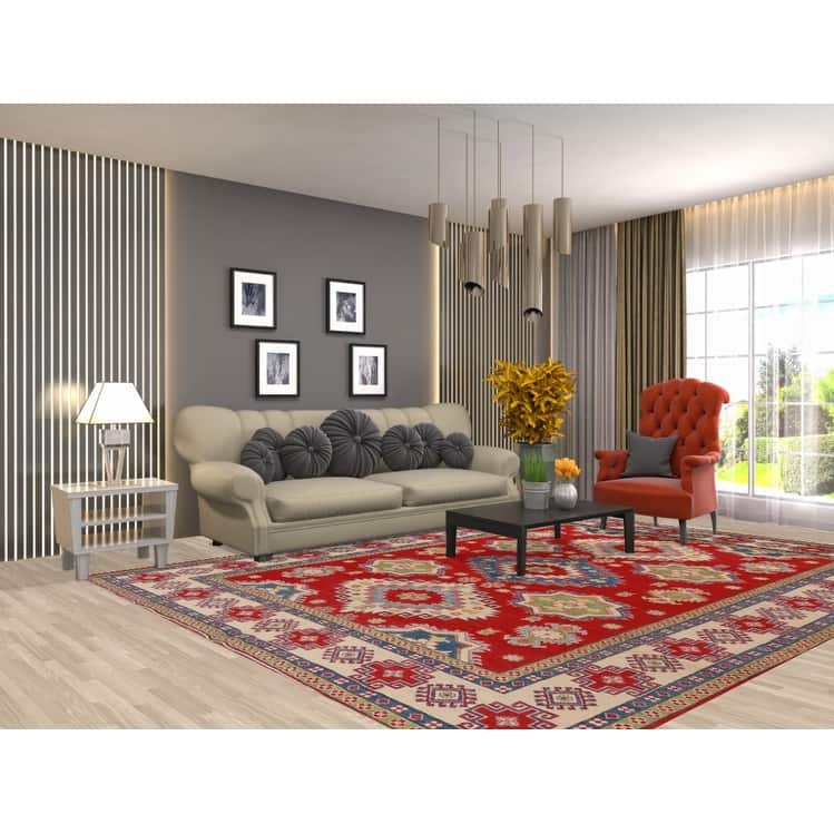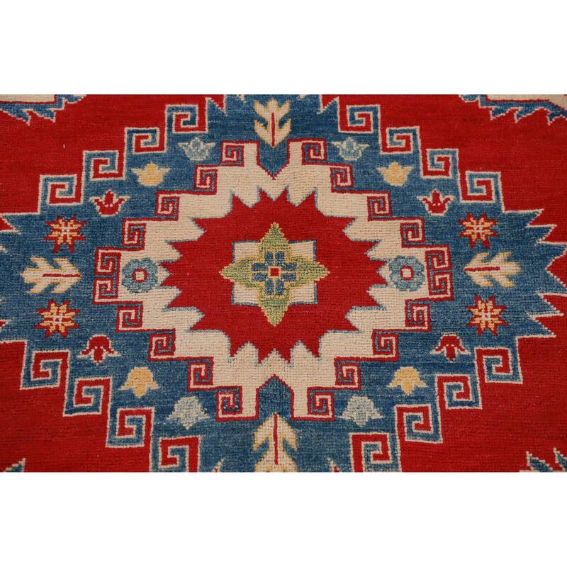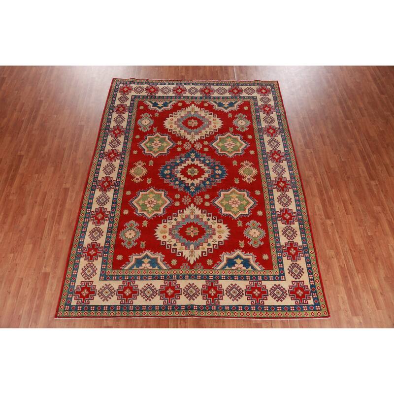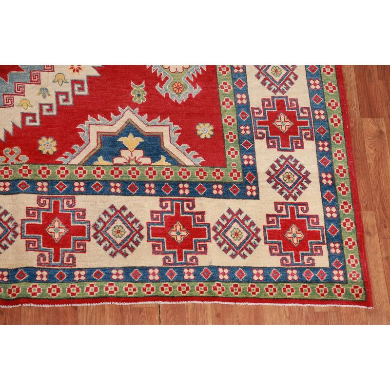 Hand Knotted Oriental 100% Wool Carpet Traditional Geometric Red Kazak Area Rug - 10' 10'' X 8' 3''