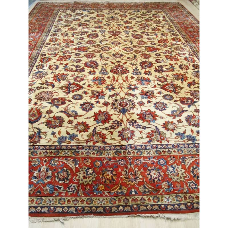 Hand-knotted Wool Beige Traditional Oriental Esfahan Rug - 13' x 19'