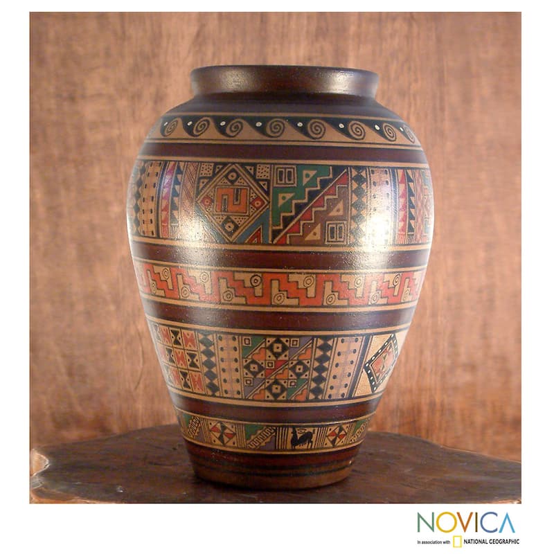 Handcrafted Ceramic 'Water Cult' Aged Cuzco Vase (Peru)