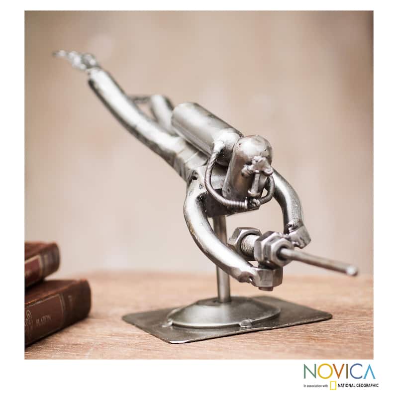 Handmade Recycled Metal 'Rustic Scuba Diver' Sculpture (Peru)