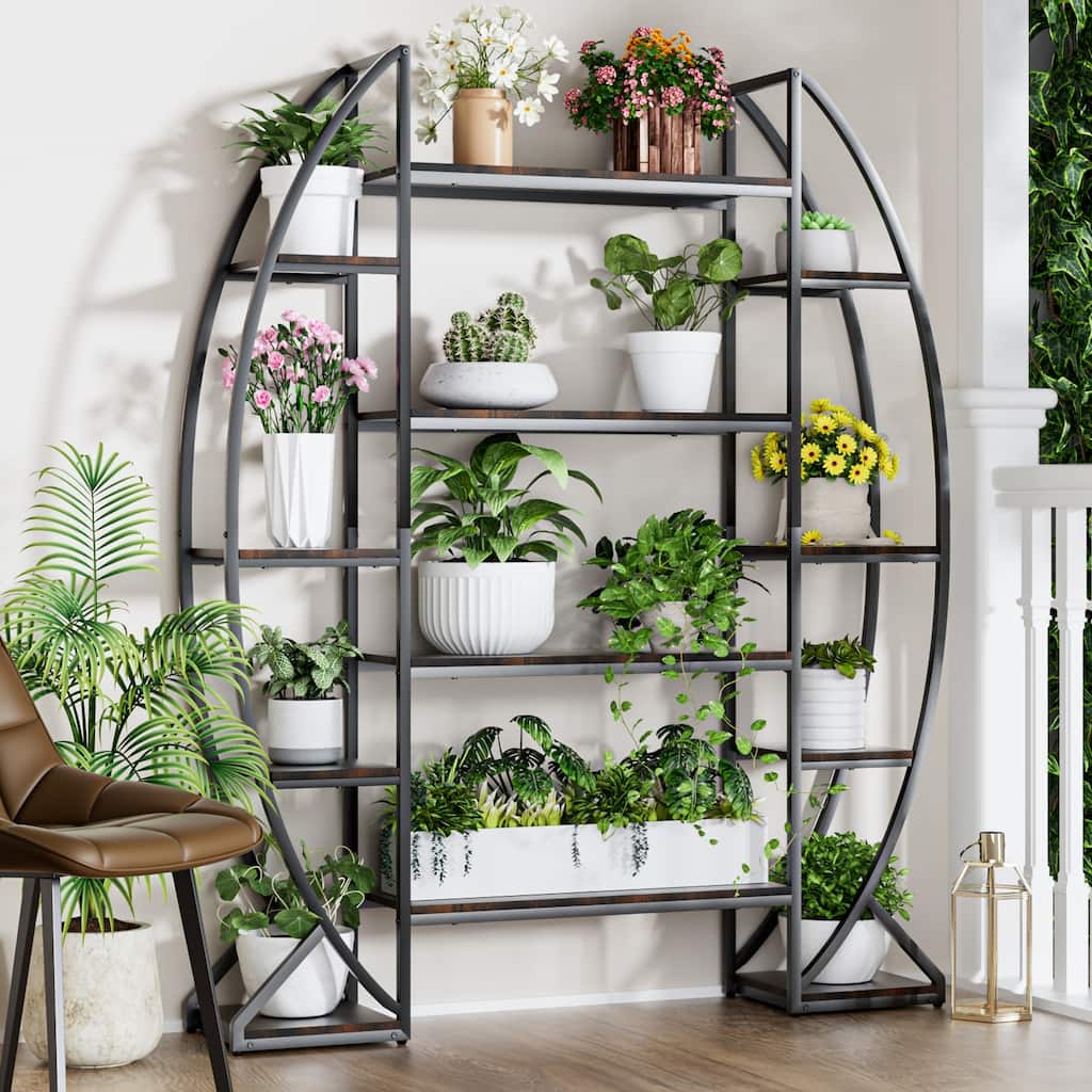 Heavy Duty Large Metal Plant Stand Flower Rack with Arched Top - 75" x 40" x 12"