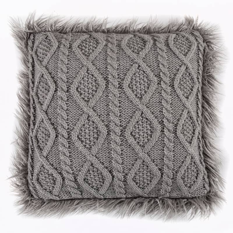 Hiend Accents Nordic Cable Knit & Mongolian Fur Throw Pillow, 18" x 18", Gray, 1PC