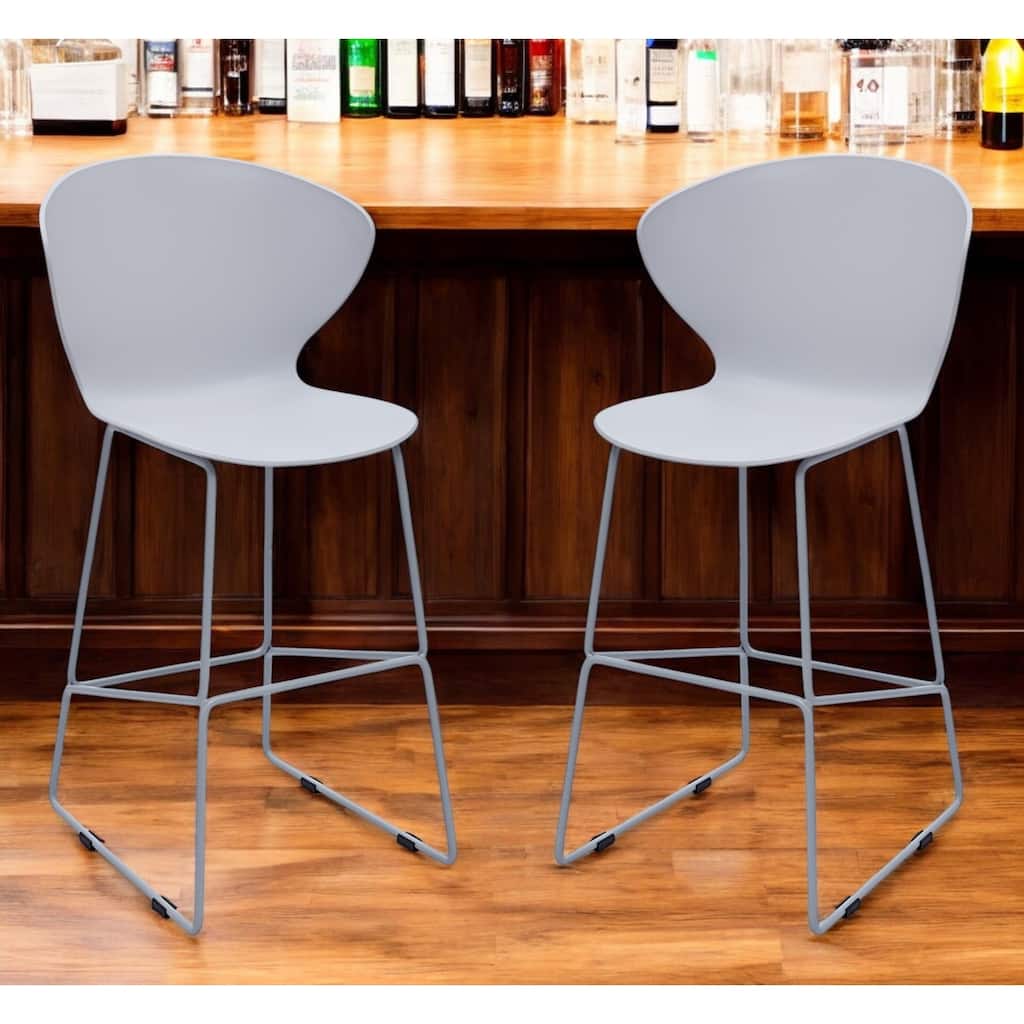 Comfortable enough to sit in for awhile, this 28-inch white and brown heavy duty plastic and solid wood low back counter height bar chair will transcend the look of your room. The base of this stool is made from solid wood in a brown color that is a nice contrast to the white plastic seat. Not only good looking and stylish, this chair features a bucket shaped seat and a low back for the ultimate in comfort and enjoyment. Designed with armrests for your comfort, this chair also features a footrest for comfort and convenience. 47-inch H x 23-inch W x 19-inch DEnjoy comfortable and stylish seating with family and friends. Features a distinctive and iconic design with super sturdy ABS molded plastic seat and solid wood legs. Features a non-swivel, stationary seat. High quality and good looking counter height bar chair. Seat height is a convenient 28 inches from the ground. The product can hold up to 400lbs.