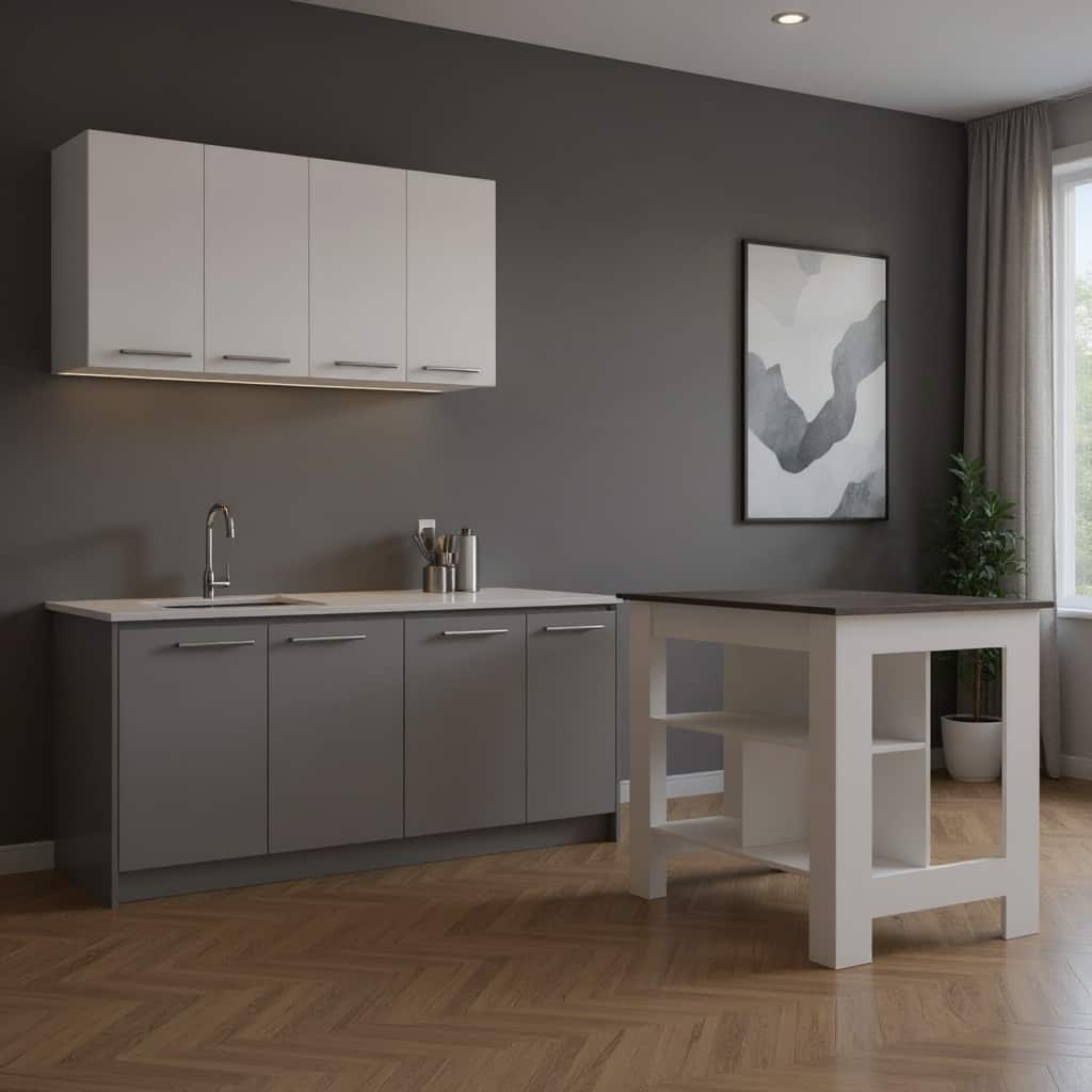 In a busy household, you need to be smart about how you organize your kitchen space. Fortunately, this 55-inch white and natural wood rolling kitchen island with storage will help you provide extra counter space for food preparation, cooking, and serving. This durable solid and manufactured wood rectangular island frees up a tremendous amount of space in your kitchen area, allowing you more flexibility as you prepare meals or serve guests. The beautiful grains and natural variations of the solid wood give this piece its own unique appearance. Utilize the convenient drawers to store your cooking utensils and accessories. Maximize your space with this multi- functional and good looking kitchen island. 36.20-inch h x 55.10-inch w x 27.60-inch d.Crafted from durable solid and manufactured wood for lasting use Designed in a rectangular shape, providing a spacious counter area for meal prep and entertaining Equipped with locking wheels for easy mobility and stability when in use Features a spacious rectangular counter for meal prep and entertaining, and an extendable table. Includes convenient pull out drawer, cabinets with storage on both sides, and counter top that extends to seat up to 4. This modern island features a neutral white and natural faux wood top, two outlets and a USB port.