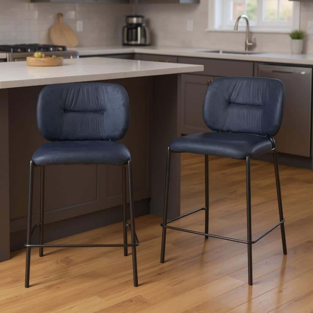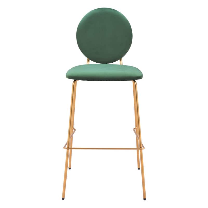Comfort and design come together nicely in this set of two 30-inch green and gold velvet and steel bar height bar chairs. The base of this stool is made from steel in a gold color that is a nice contrast to the green upholstered seat. The bucket shape of the seat combines with a full back to give this chair a comfortable and fashionable look. 43.30-inch h x 18.90-inch w x 20.10-inch d.Enjoy comfortable and stylish seating with family and friends. Includes a footrest for convenience and leg support. Seat height is a convenient 29.9 inches from the ground. Suitable for use in home, commercial, and hospitality settings. The armless style brings a touch of modern to your space. The product can hold up to 350lbs.