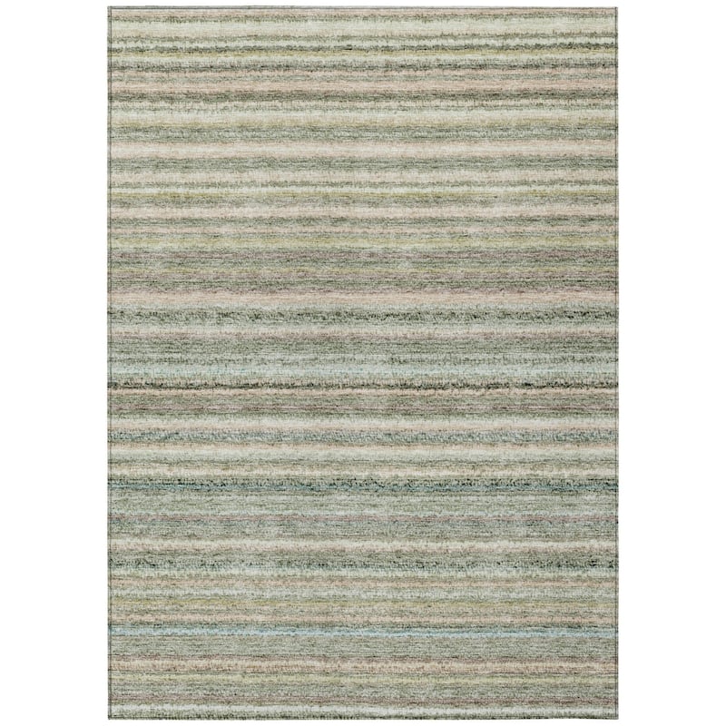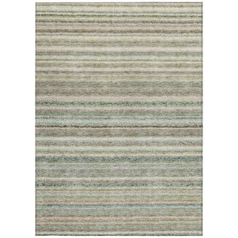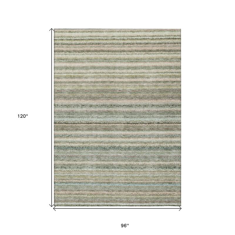 Set an inviting tone in your space with this 10-foot x 14-foot sage mint green and beige striped washable indoor outdoor area rug. This rectangle shaped rug features a striped design that will work well both indoors or out. A classic shape marries with good looking design for your living room, hall, bedroom, porch, patio, or poolside. Ideal for outdoor spaces or high traffic areas with kids and pets, this rug is made from heavy duty polyester that is stain resistant to help repel water, dirt, and stains. Versatile in use, durable, and easy to maintain, this rug is an ideal solution to add a decorative and inviting touch to your indoor or outdoor space. 120-inch h x 168-inch w x 0.19-inch d.A felt backing covers this rug to finish the look, keep the fibers in place, and help to keep the rug from slipping. Classically shaped, this versatile rectangular rug is a great way to accent your indoor or outdoor space. Features a traditional striped design. Machine woven rugs offer precise design and designer looks for a fraction of their handmade counterparts. Rug is machine washable for ease and convenience. Suitable for use both indoors and outdoors this rug is ideal for deck, porch, patio, pool, kitchen, entrance foyer, and more.
