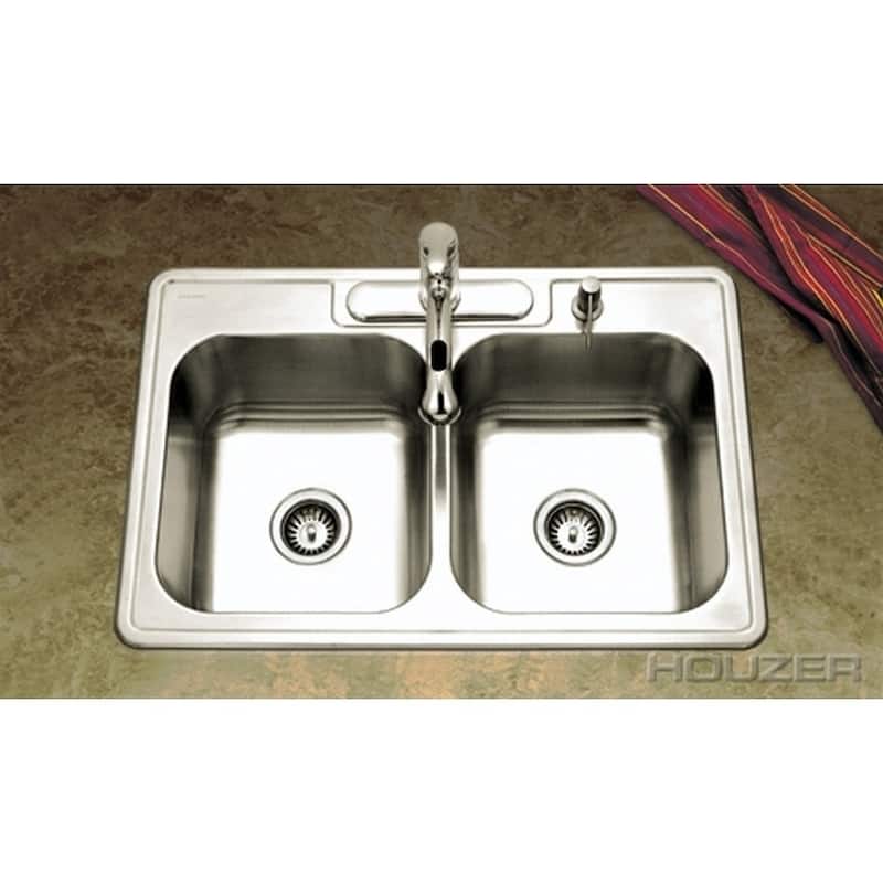 Houzer Glowtone 8-inch Deep 4-hole Double Bowl
