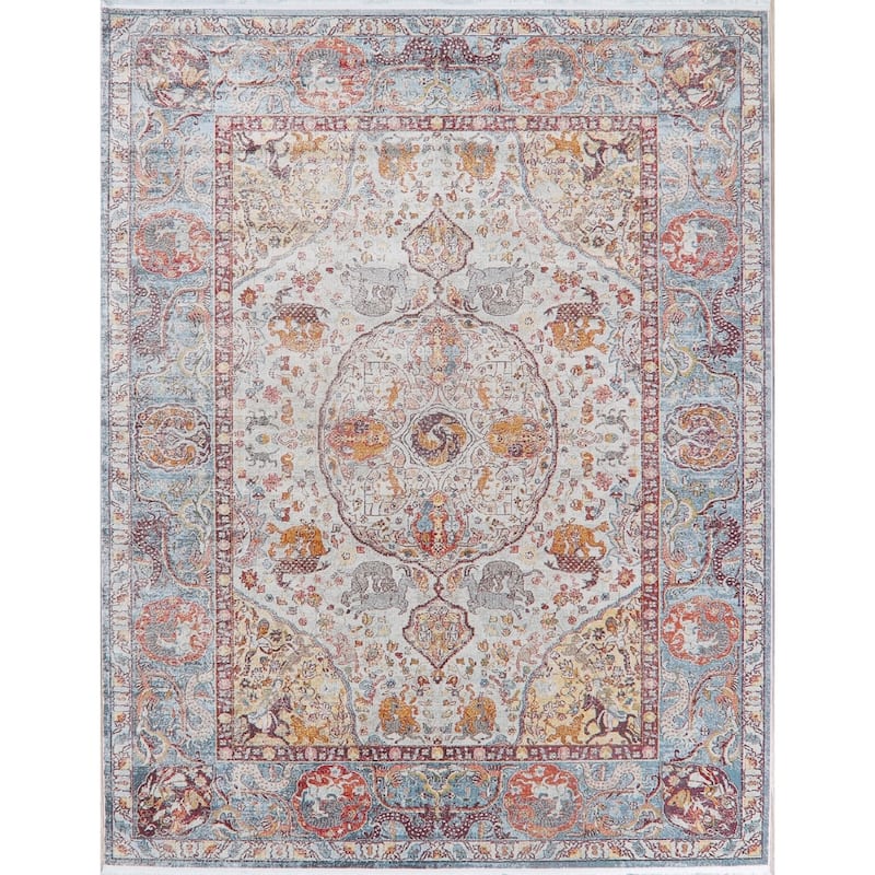 Hunting Style Animal Pictorial Distressed Oriental Heat-set Area Rugs