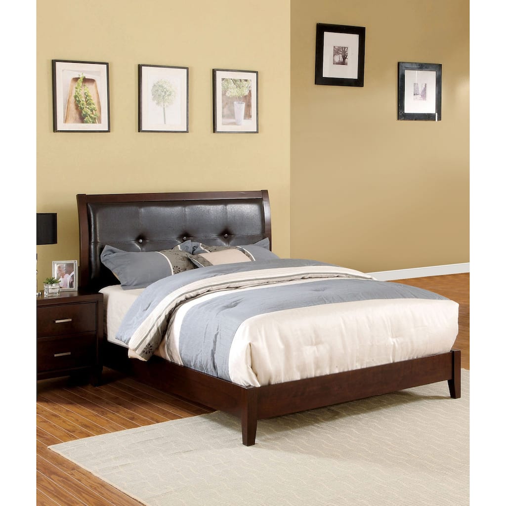 Furniture of America Gols Modern Black Faux Leather Padded Platform Bed